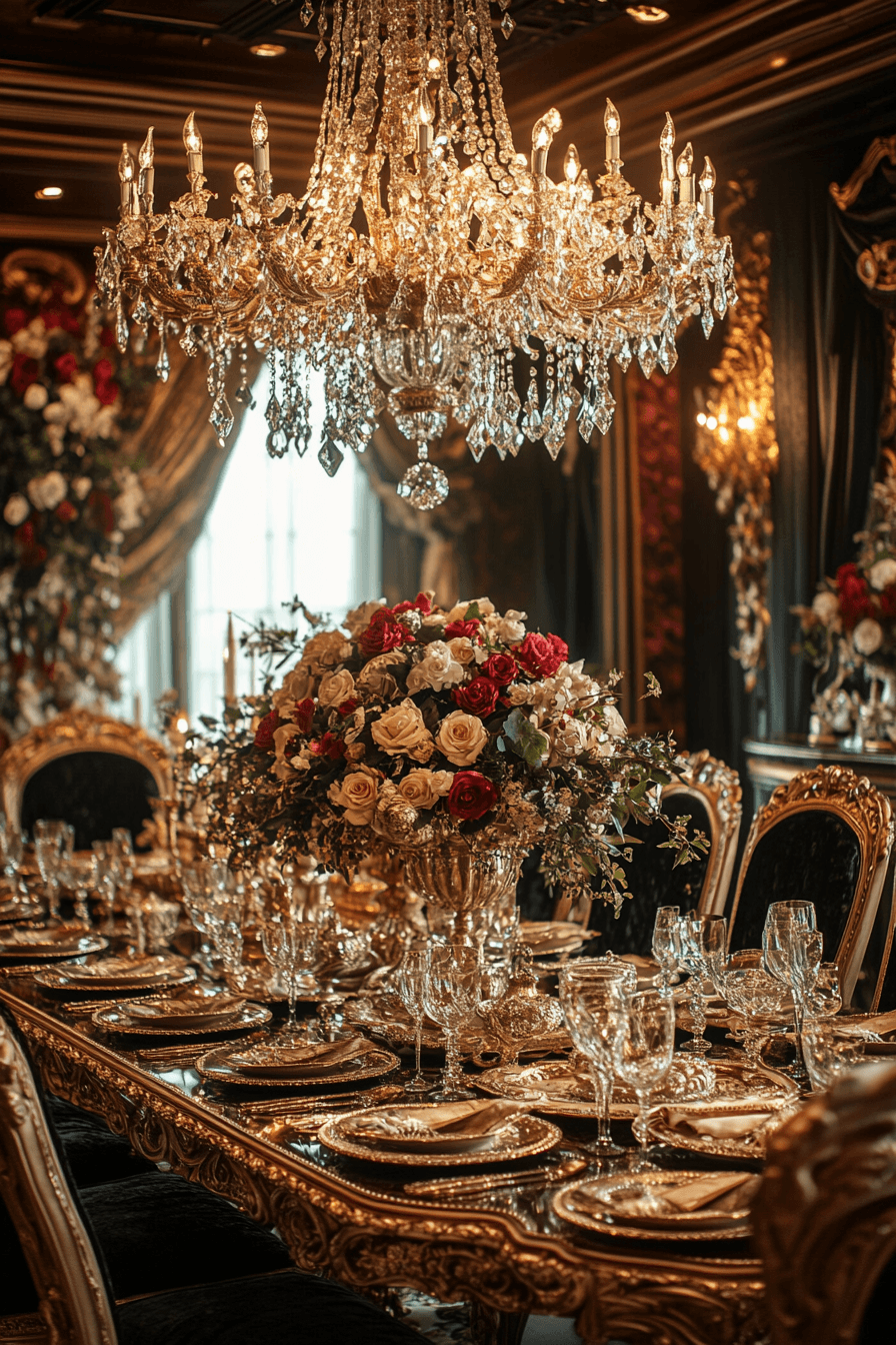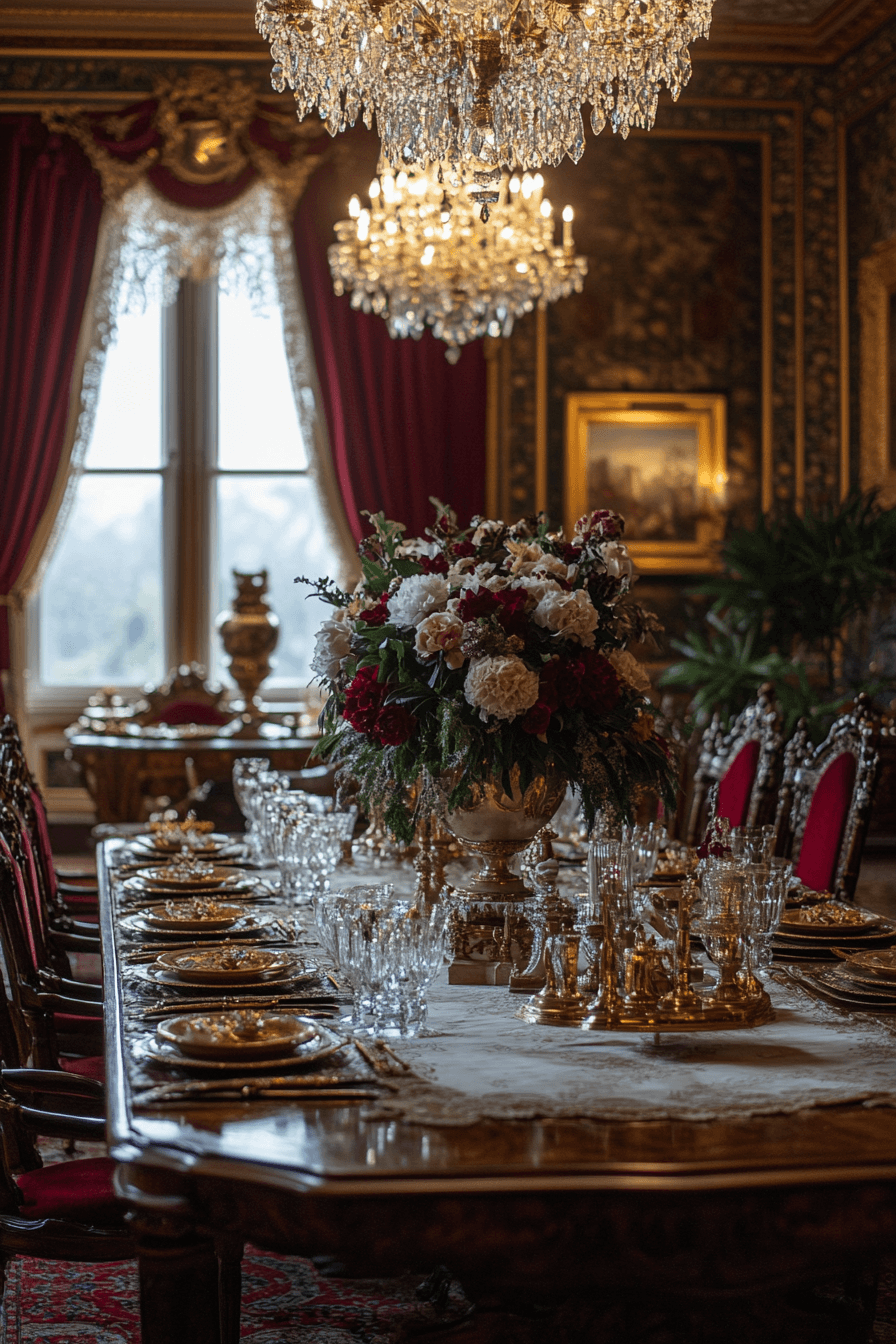 Golden luxury sparkles through antique dining rooms inspired by the Gilded Age. Ornate furnishings and shimmering finishes create dramatic elegance. Jewel-toned textiles add warmth and visual richness. Crystal chandeliers illuminate the room with dazzling brilliance. Celebratory atmosphere defines these glamorous antique dining rooms. Transform your entertaining space with Gilded Age antique dining rooms today!