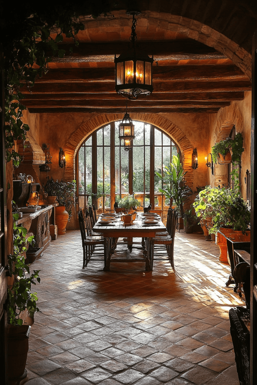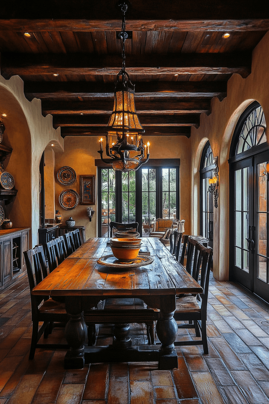 Rustic Mediterranean character shines through antique dining rooms influenced by Spanish Revival style. Textured walls and carved wood furnishings create visual depth. Wrought iron lighting introduces dramatic personality and charm. Arched doorways frame the room beautifully. Lively atmosphere defines these vibrant antique dining rooms. Bring Spanish Revival antique dining rooms into your home and enjoy festive gatherings today!