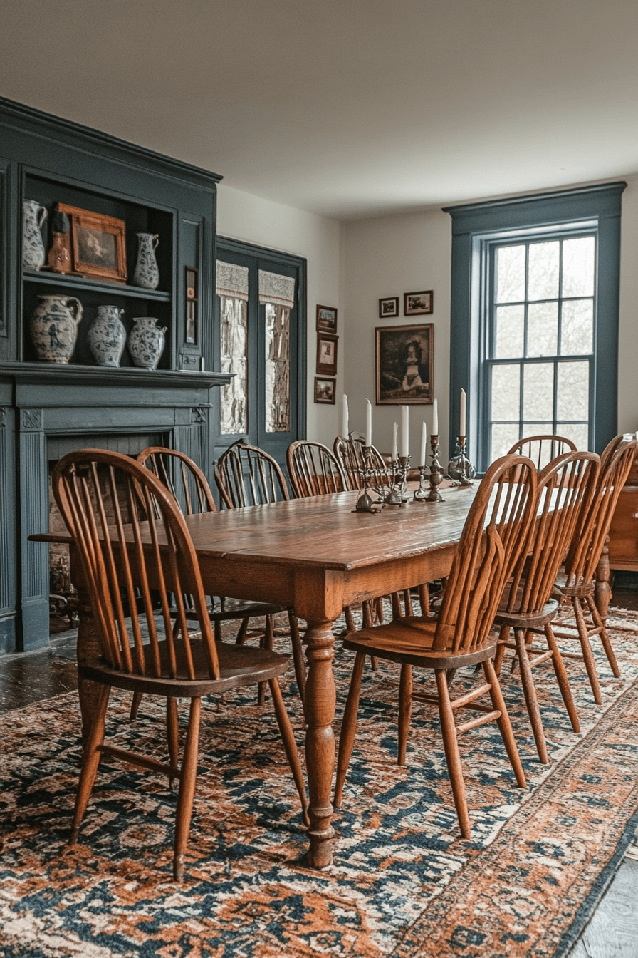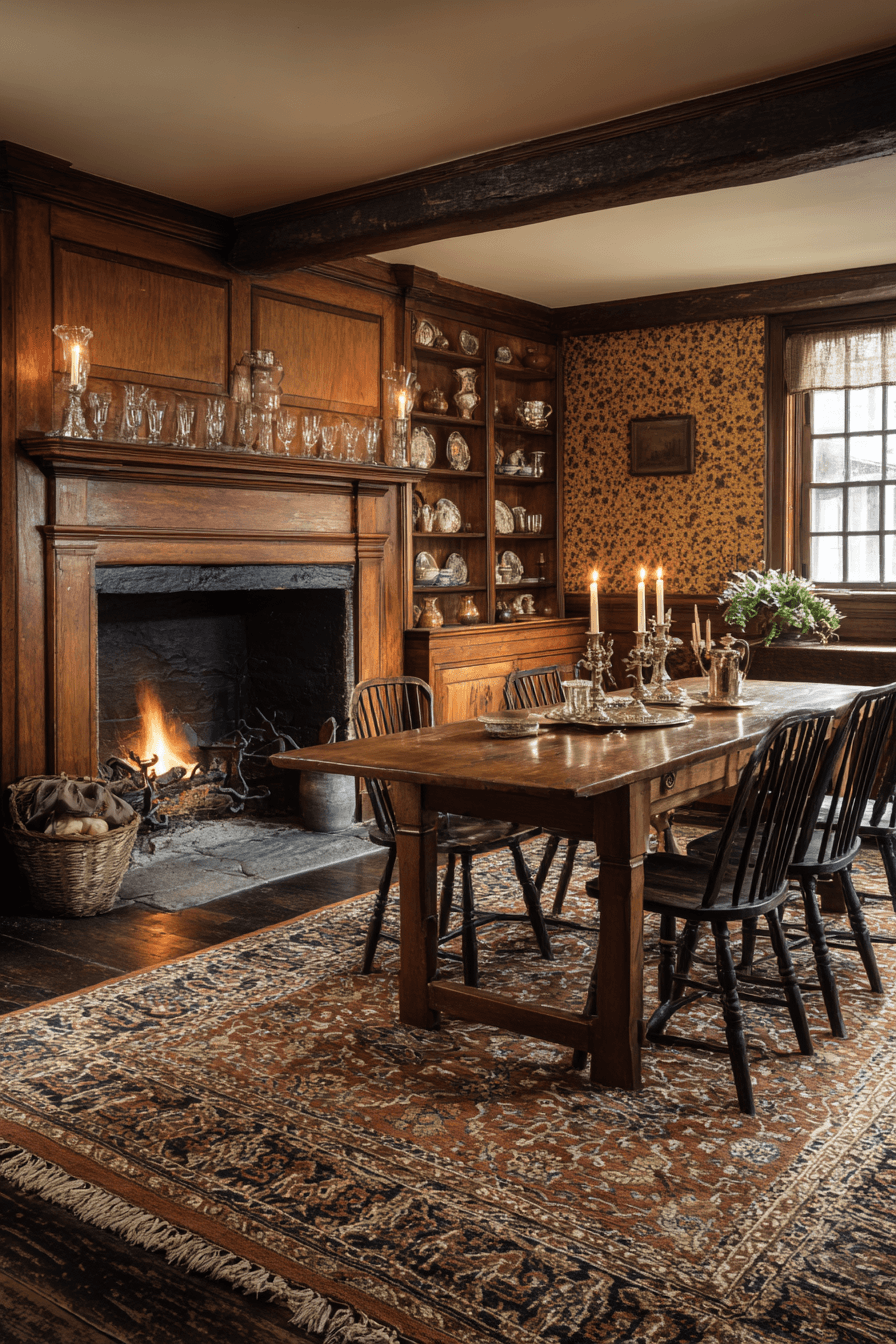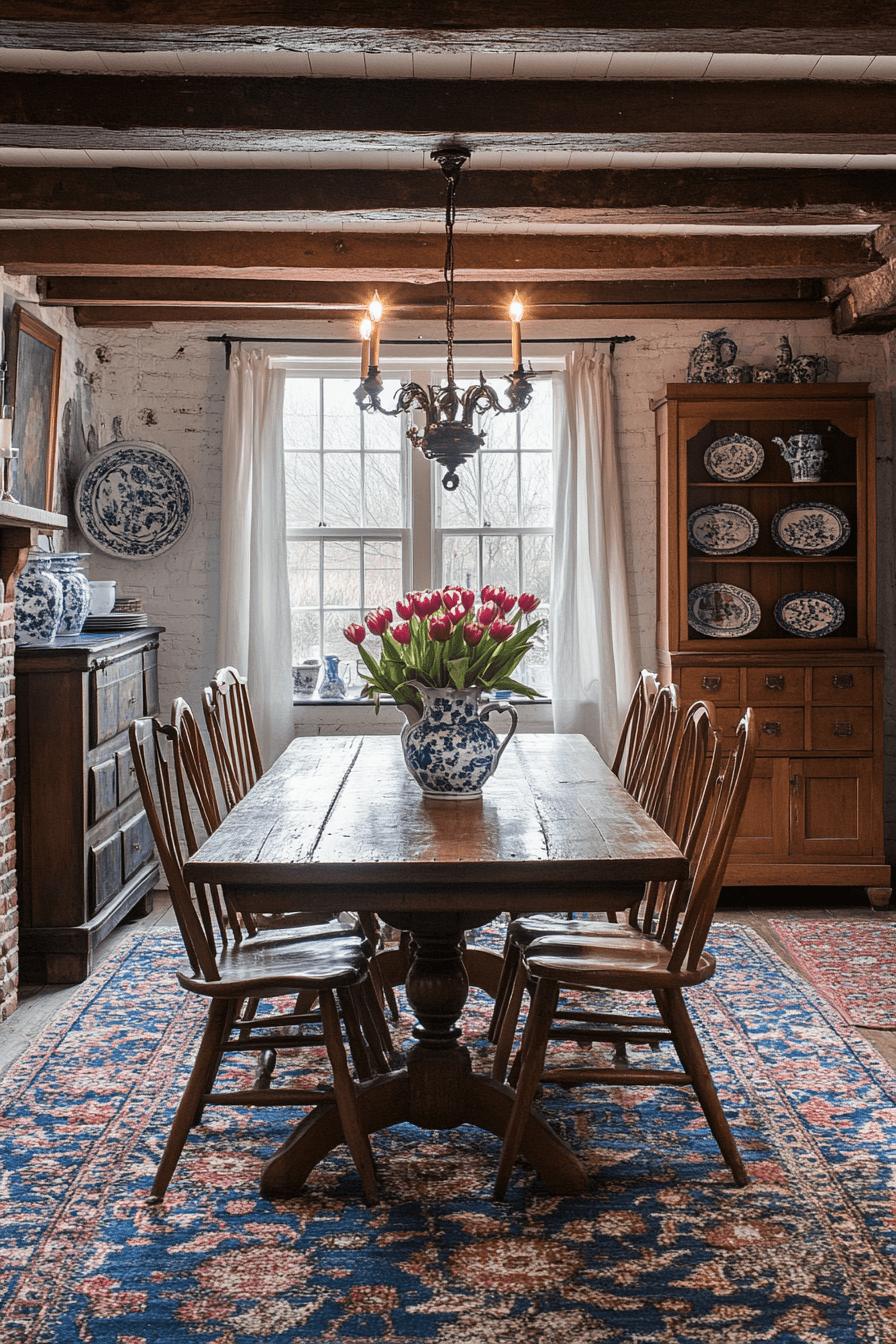 Warm heritage charm defines antique dining rooms inspired by Dutch Colonial style. Dark wood furnishings add richness and authenticity. Rustic touches blend comfort with subtle sophistication. Welcoming layouts encourage relaxed conversation and shared meals. Timeless warmth fills these charming antique dining rooms. Create a welcoming dining area with Dutch Colonial antique dining rooms today!