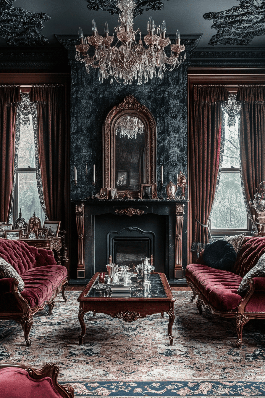 Gilded Age splendor shapes antique home decor ideas filled with luxurious shine and historic glamour. Crystal chandeliers, gold accents, and dramatic drapery instantly elevate the room. Marble tables and mirrored furniture reflect light to enhance the brilliance. Every decorative piece feels indulgent yet beautifully curated. The overall atmosphere feels lavish and welcoming at the same time. Discover antique home decor ideas inspired by the Gilded Age that fill your home with radiant elegance!