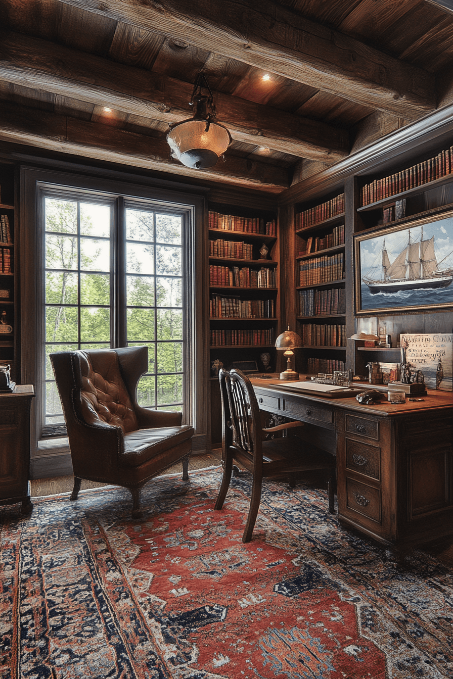 Nautical inspiration refreshes antique home decor ideas with breezy coastal personality. Vintage lanterns, maritime maps, and rope accents create a subtle seaside theme. Blue-and-white color palettes paired with natural wood finishes keep the room feeling light. Antique trunks or brass telescopes introduce storytelling elements that feel adventurous. These antique home decor ideas work beautifully in beach homes or relaxed dens. Explore antique home decor ideas that capture the peaceful spirit of coastal living!