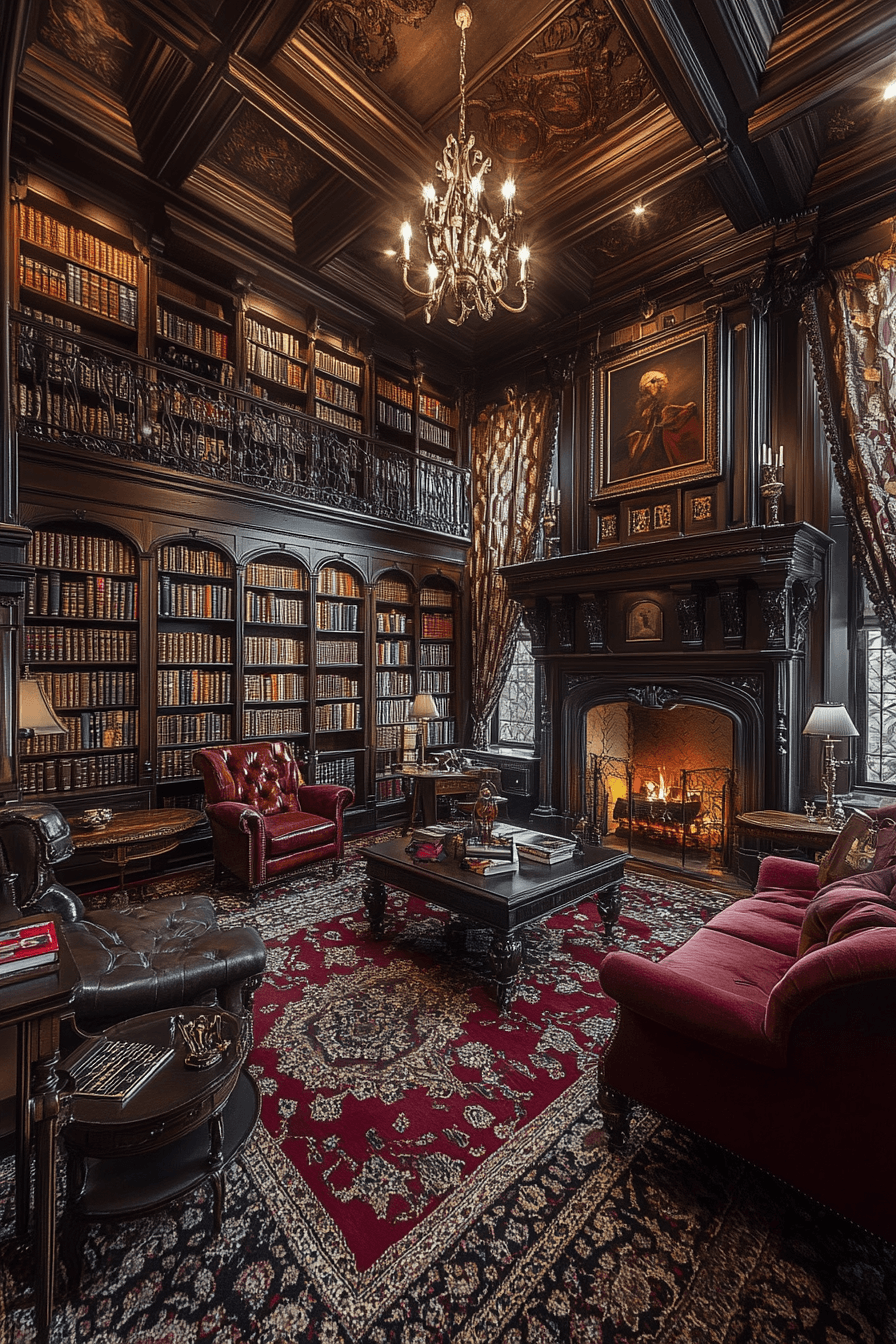 Gothic influence adds dramatic atmosphere to antique home decor ideas rich with historic mood. Dark wood furnishings, wrought iron details, and pointed arches establish a mysterious elegance. Deep jewel tones combined with candlelight lighting enhance the romantic ambiance. Antique books, tapestries, and historic artwork deepen the storytelling effect. The style feels dramatic yet timelessly beautiful. Explore antique home decor ideas inspired by Gothic interiors that create unforgettable spaces!