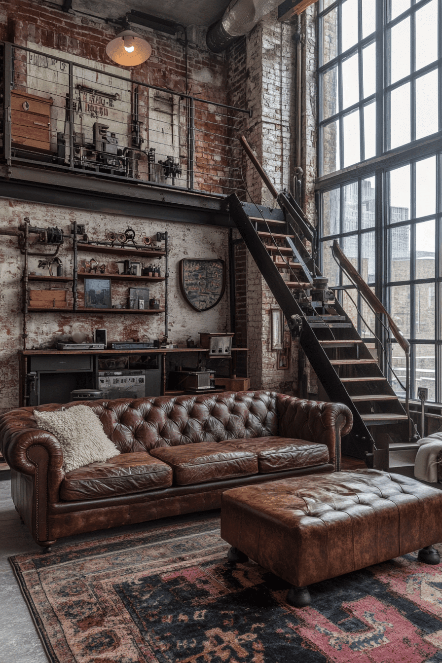 Industrial heritage energizes antique home decor ideas with bold architectural personality. Metal shelving, riveted furniture, and reclaimed factory lighting create striking design elements. Antique drafting tables and workshop pieces add authenticity to the space. Weathered wood surfaces soften the industrial edge with warmth. The room feels artistic, edgy, and stylishly vintage. Discover antique home decor ideas inspired by industrial style that celebrate raw character and craftsmanship!