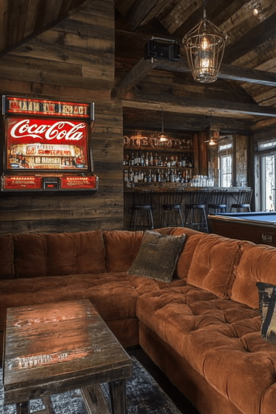Americana nostalgia inspires antique home decor ideas filled with playful vintage character. Classic red-and-white palettes, retro signage, and historic memorabilia energize the room. Framed posters or sports collectibles create engaging conversation pieces. Rustic wood and leather seating keep the environment cozy and welcoming. These antique home decor ideas are perfect for entertainment rooms or lounges. Explore antique home decor ideas that celebrate classic American charm!