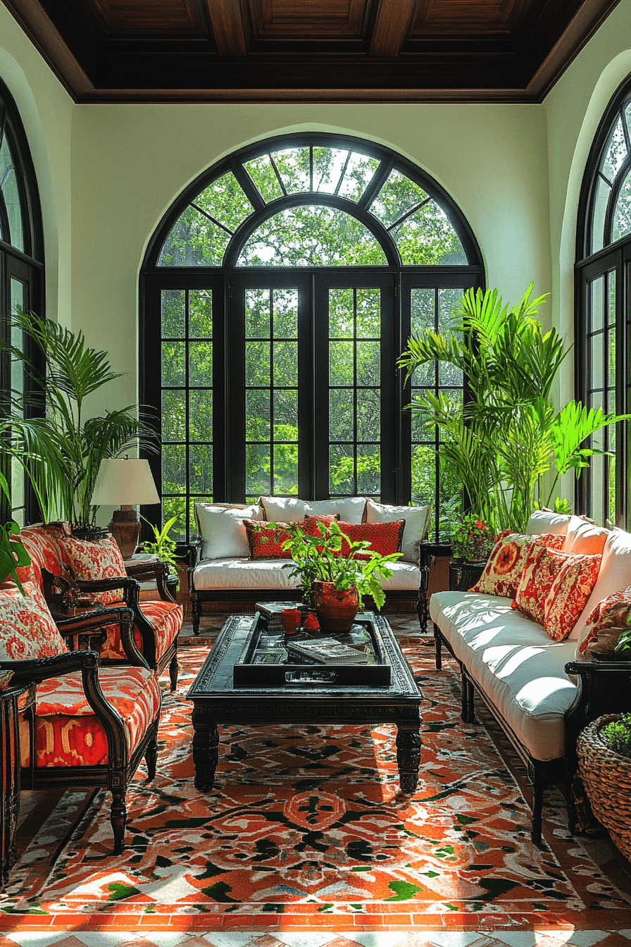 Spanish Revival warmth energizes antique home decor ideas with Mediterranean charm. Arched doorways, decorative tiles, and iron fixtures add vibrant architectural character. Terra cotta tones and painted pottery introduce rich color. Antique wooden furniture and plush textiles maintain comfort and warmth. The space feels lively, welcoming, and full of personality. Discover antique home decor ideas inspired by Spanish Revival design!