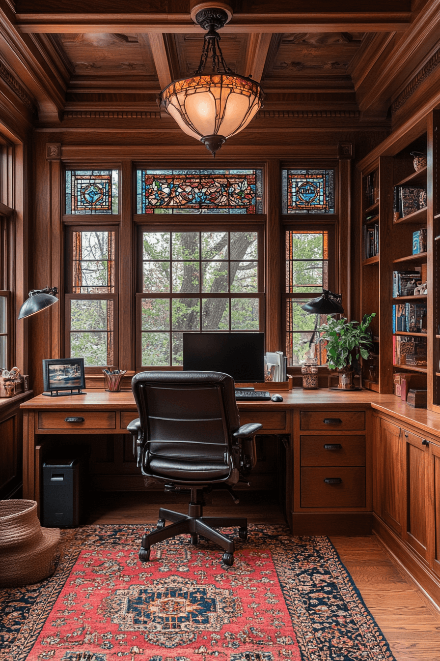 Craftsman style celebrates craftsmanship within antique home decor ideas rooted in thoughtful design. Mission furniture, built-in shelving, and leaded glass details create cohesive beauty. Earthy tones and textured fabrics add depth and warmth. Every design element feels purposeful and authentic. The style balances function with timeless character. Explore antique home decor ideas inspired by Craftsman heritage!
