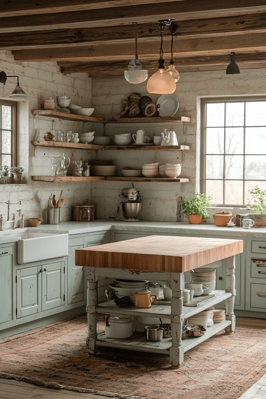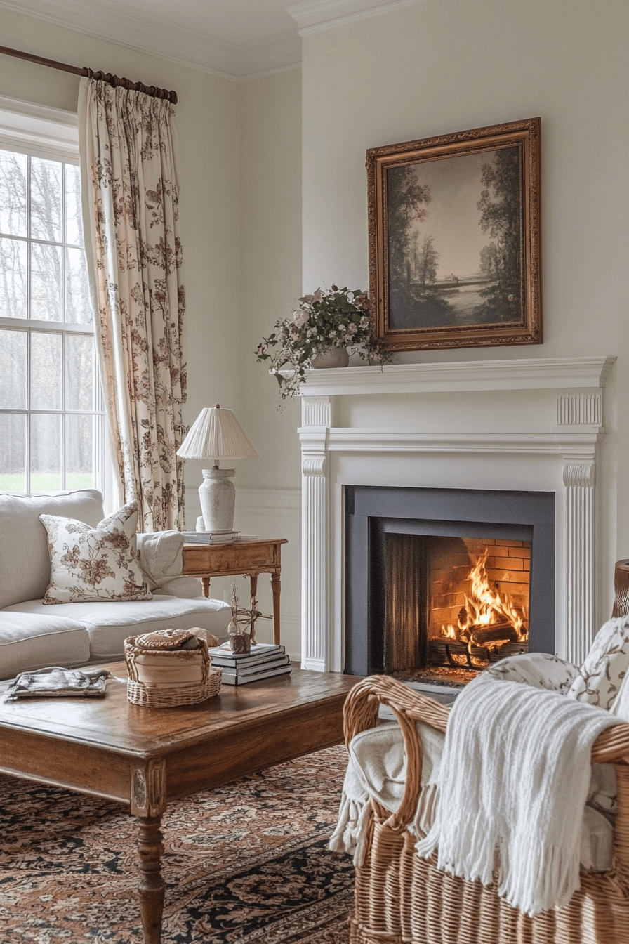 Rustic countryside living inspires antique home decor ideas centered on warmth and natural comfort. Distressed wood furniture, antique iron fixtures, and vintage kitchen accents create authentic farmhouse personality. Cozy woven blankets and handmade decor pieces layer the room with texture. Soft earth tones help maintain a relaxing and welcoming atmosphere. The overall feeling is nostalgic yet polished and thoughtfully styled. Discover antique home decor ideas that bring rustic countryside charm into every room!