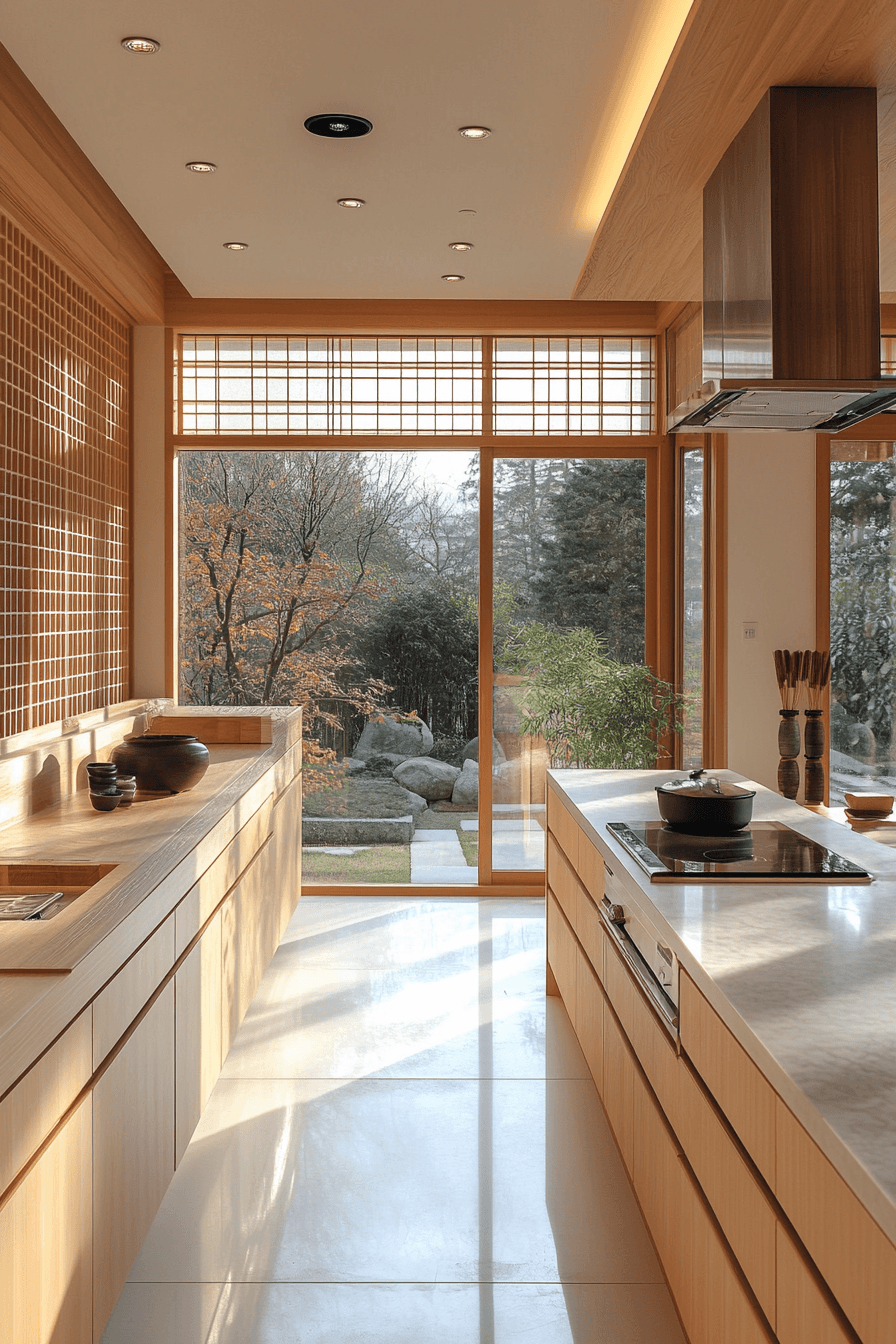 Japanese design philosophy introduces harmony and minimal beauty into antique kitchen decor ideas. Natural wood cabinetry, stone counters, and sliding panels create tranquil balance. Open layouts keep the kitchen uncluttered and functional. Handcrafted pottery and subtle textures add gentle detail. Natural light enhances the calming atmosphere. Discover antique kitchen decor ideas inspired by Japanese tradition!