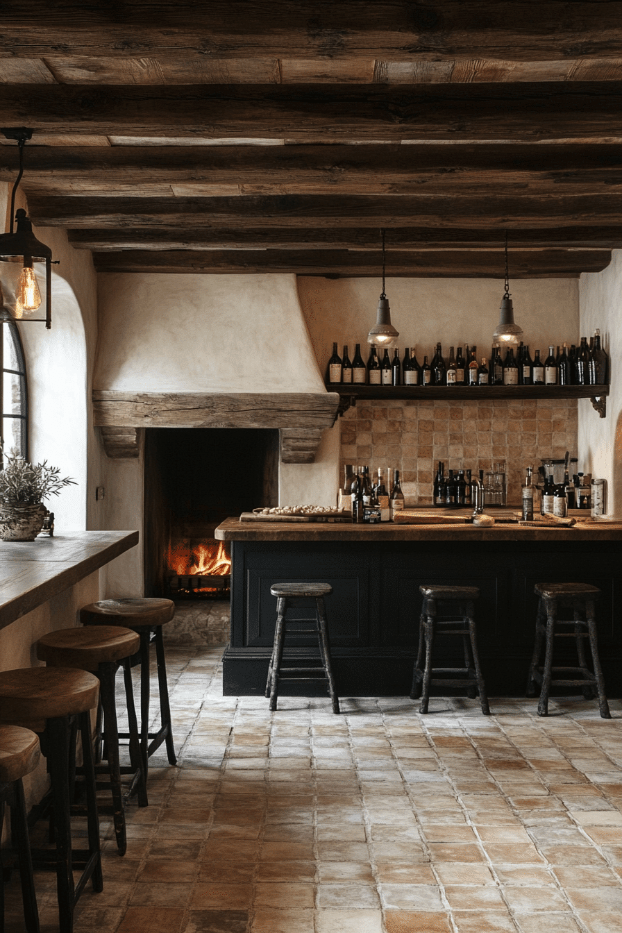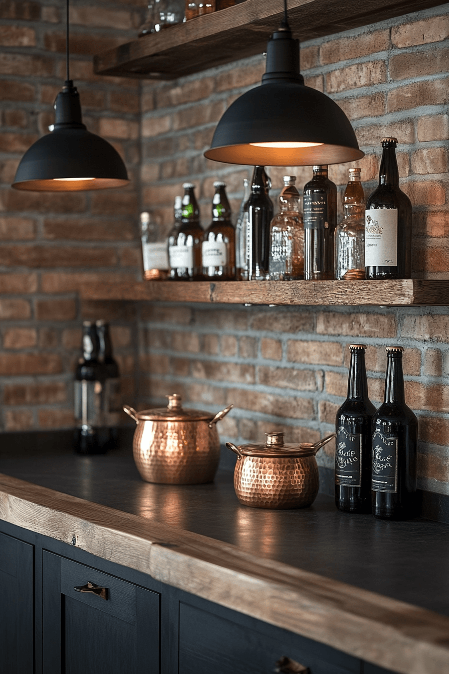 Speakeasy inspiration brings mysterious vintage charm to antique kitchen decor ideas. Dark cabinetry, antique signage, and hidden storage compartments add intrigue. Apothecary jars and rustic shelves introduce nostalgic character. Warm lighting creates a cozy entertaining atmosphere. The kitchen feels playful and full of personality. Explore antique kitchen decor ideas inspired by the Prohibition era!