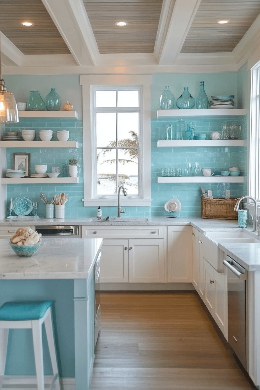 Coastal cottage charm refreshes antique kitchen decor ideas with breezy seaside brightness. Whitewashed wood, pale blues, and airy fabrics create uplifting warmth. Open shelves and glass cabinets keep the room light. Driftwood accents introduce subtle nautical touches. The kitchen feels cheerful and relaxed. Explore antique kitchen decor ideas inspired by coastal cottage living!