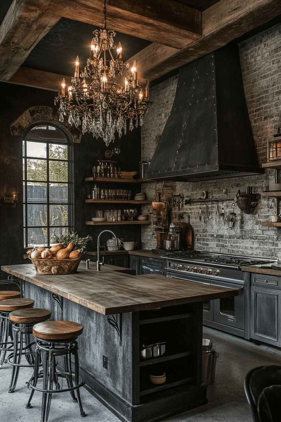 Industrial character gives antique kitchen decor ideas bold vintage edge and architectural interest. Exposed brick, iron shelving, and reclaimed wood counters create layered texture throughout the space. Antique factory lights and metal stools reinforce the workshop aesthetic. Stainless surfaces add practicality while blending with aged materials. The result feels creative, rugged, and stylishly historic. Explore antique kitchen decor ideas that combine industrial strength with vintage charm!