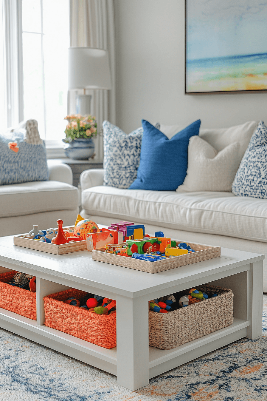 Practical design leads family-friendly coffee table decor ideas. Durable materials and rounded shapes keep the space safe and stylish. Storage solutions help manage daily clutter. Interactive elements invite connection and play. The table adapts to real life beautifully. Make everyday living easier with coffee table decor ideas built for families.