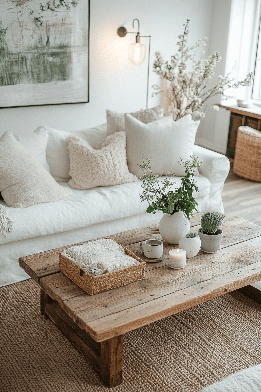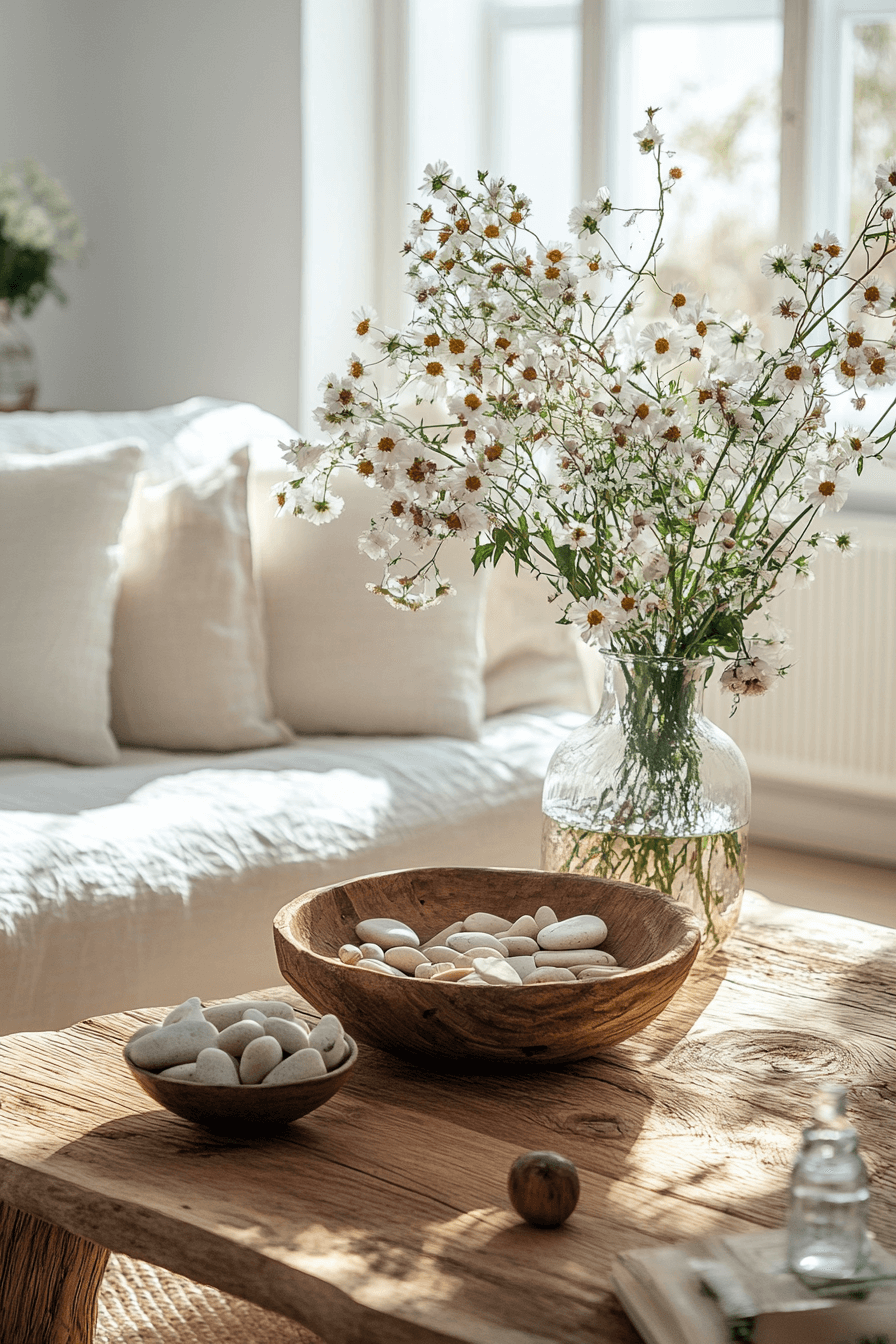 Earthy textures ground organic coffee table decor ideas. Wood, stone, and greenery bring natural calm indoors. Imperfect forms add depth and authenticity. The table feels serene and balanced. Nature becomes part of your decor story. Reconnect with natural beauty through coffee table decor ideas inspired by the outdoors.