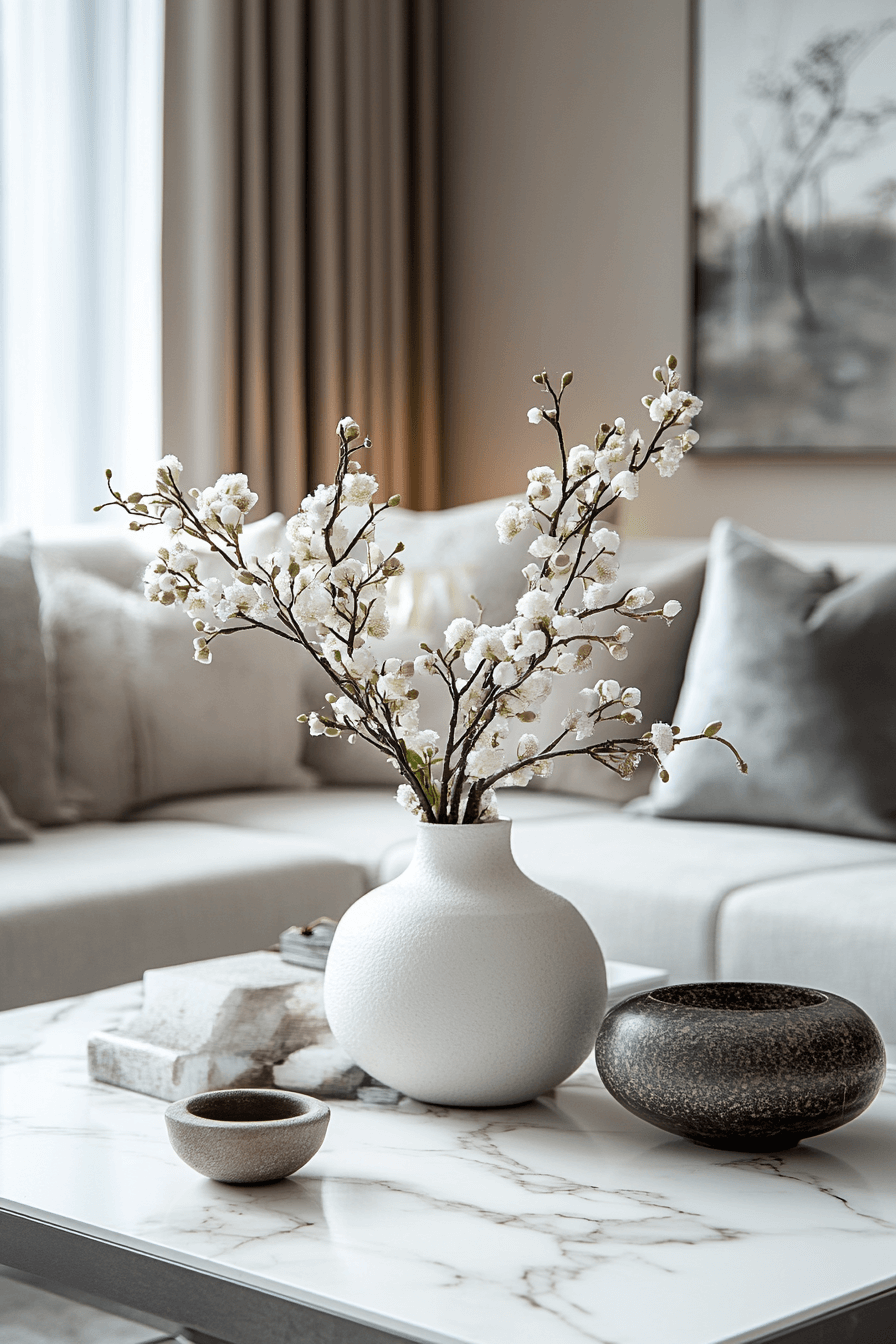 Elegant texture defines coffee table decor ideas featuring marble accents. Natural veining adds depth and sophistication. Paired with softer materials, marble feels balanced and timeless. The look works across design styles. A refined statement without excess. Elevate your table styling with coffee table decor ideas that feel timeless and luxe.