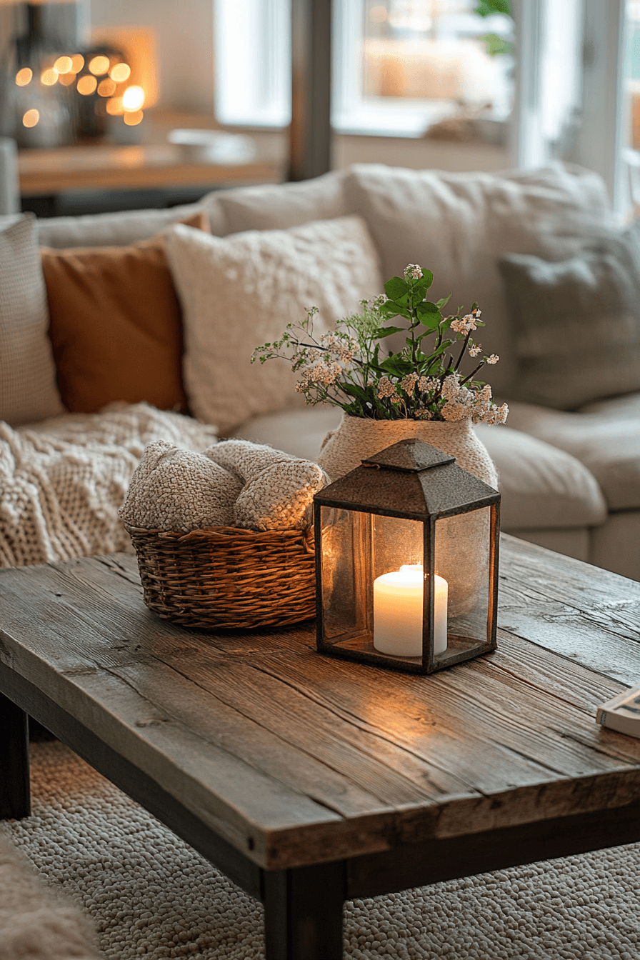 Soft ambiance defines romantic coffee table decor ideas. Candlelight and layered textures create warmth and intimacy. Thoughtful accents add emotional charm. The table sets the mood effortlessly. Ideal for relaxing evenings. Create cozy moments with coffee table decor ideas that glow softly.