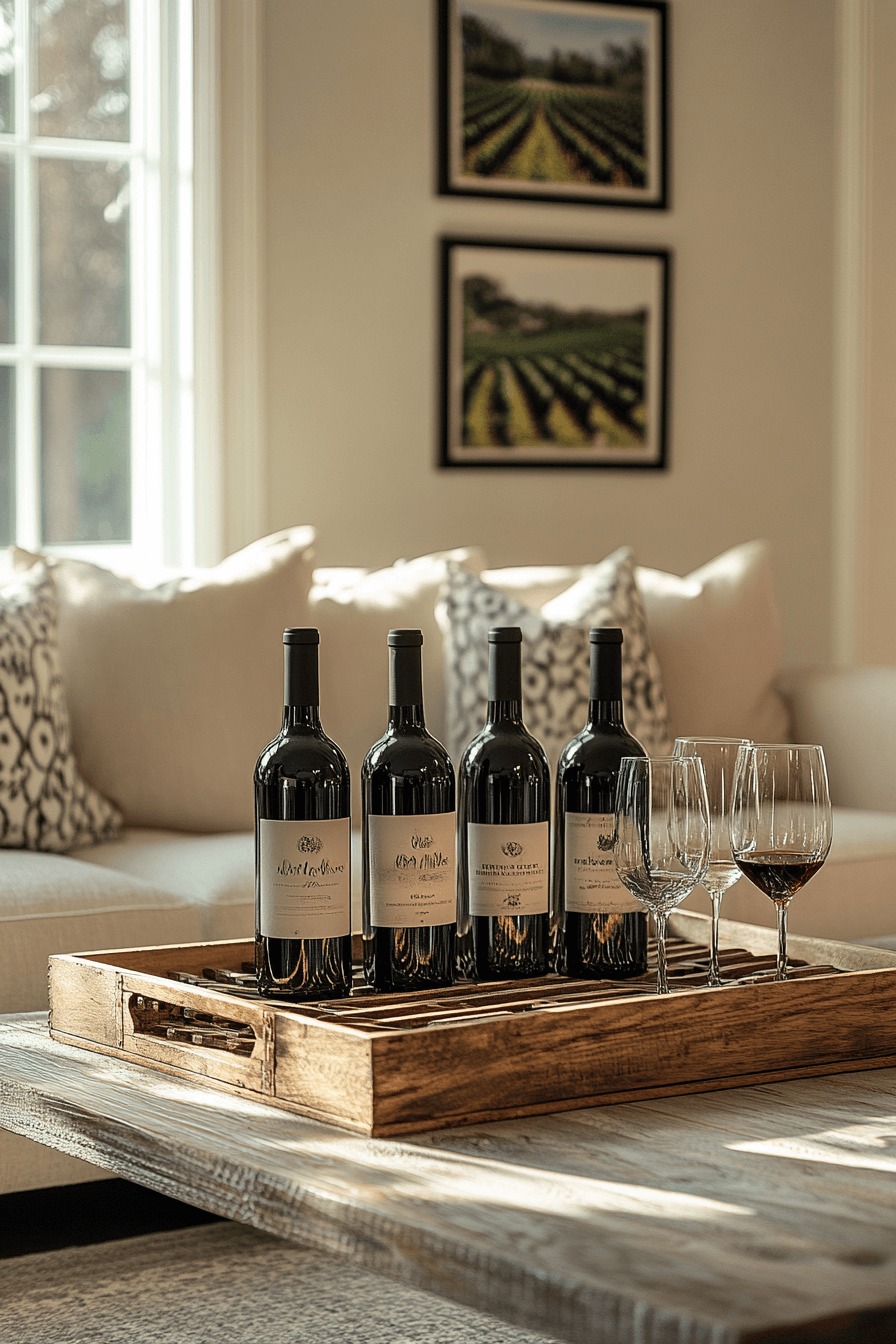 Relaxed sophistication defines wine-inspired coffee table decor ideas. Elegant accessories create a refined yet welcoming mood. The setup encourages conversation and connection. Ideal for entertaining or unwinding. The table feels curated and cozy. Set the tone for evenings in with coffee table decor ideas made for wine lovers.
