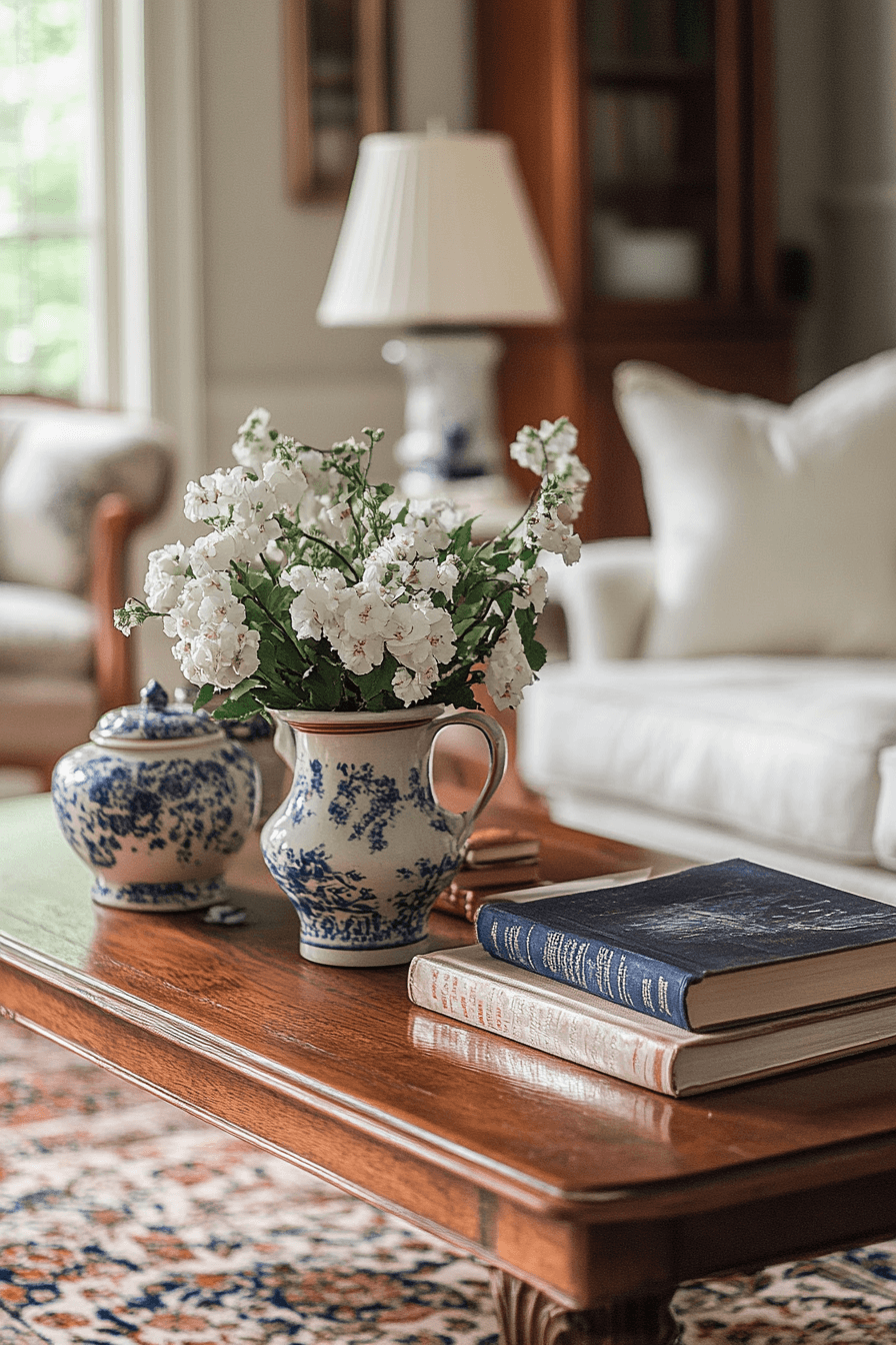 Old-world charm enriches coffee table decor ideas inspired by antique collections. Vintage books and keepsakes add warmth and depth. Layered textures create a cozy, thoughtful arrangement. Each piece feels meaningful and storied. The table becomes a conversation starter. Bring heritage-inspired style into your home with coffee table decor ideas full of character.