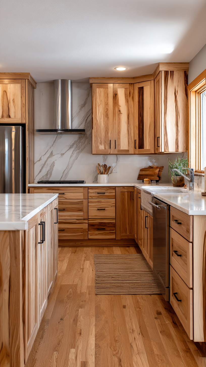 I’ve seen hickory cabinets transform countless kitchens from blah to beautiful. Whether you’re going full farmhouse or aiming for a more modern vibe, these cabinets can handle it all.