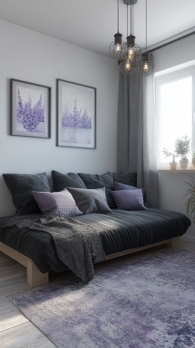Pro Tip: “When in doubt, step back and look at your room. If any area feels too ‘heavy’ with purple, break it up with white or natural elements.”