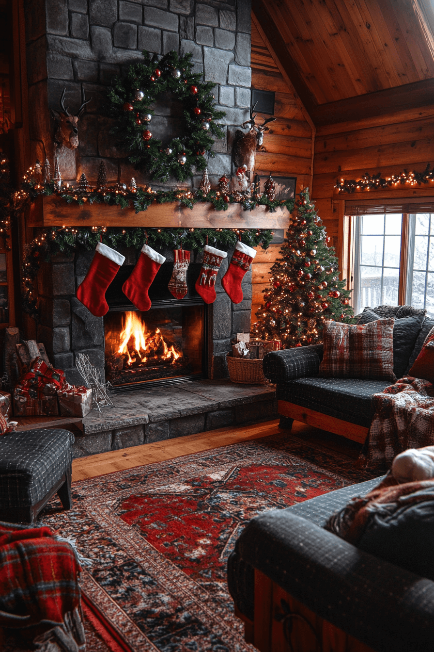 The playroom becomes a world of imagination during your little cabin Christmas. Garland-lined walls and glowing lights spark endless joy. Soft toys and cozy rugs make it feel magical. Giggles fill the air like music.