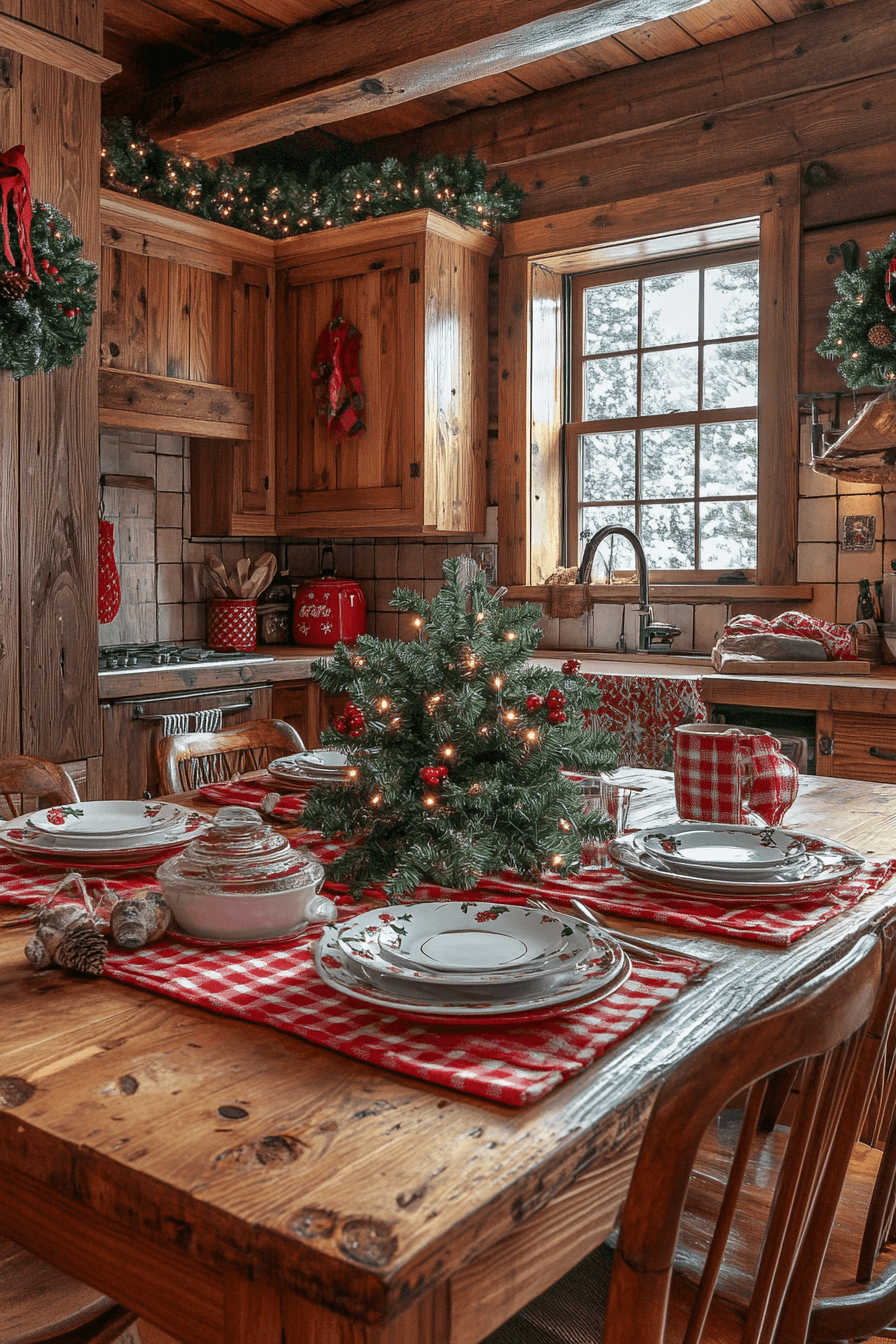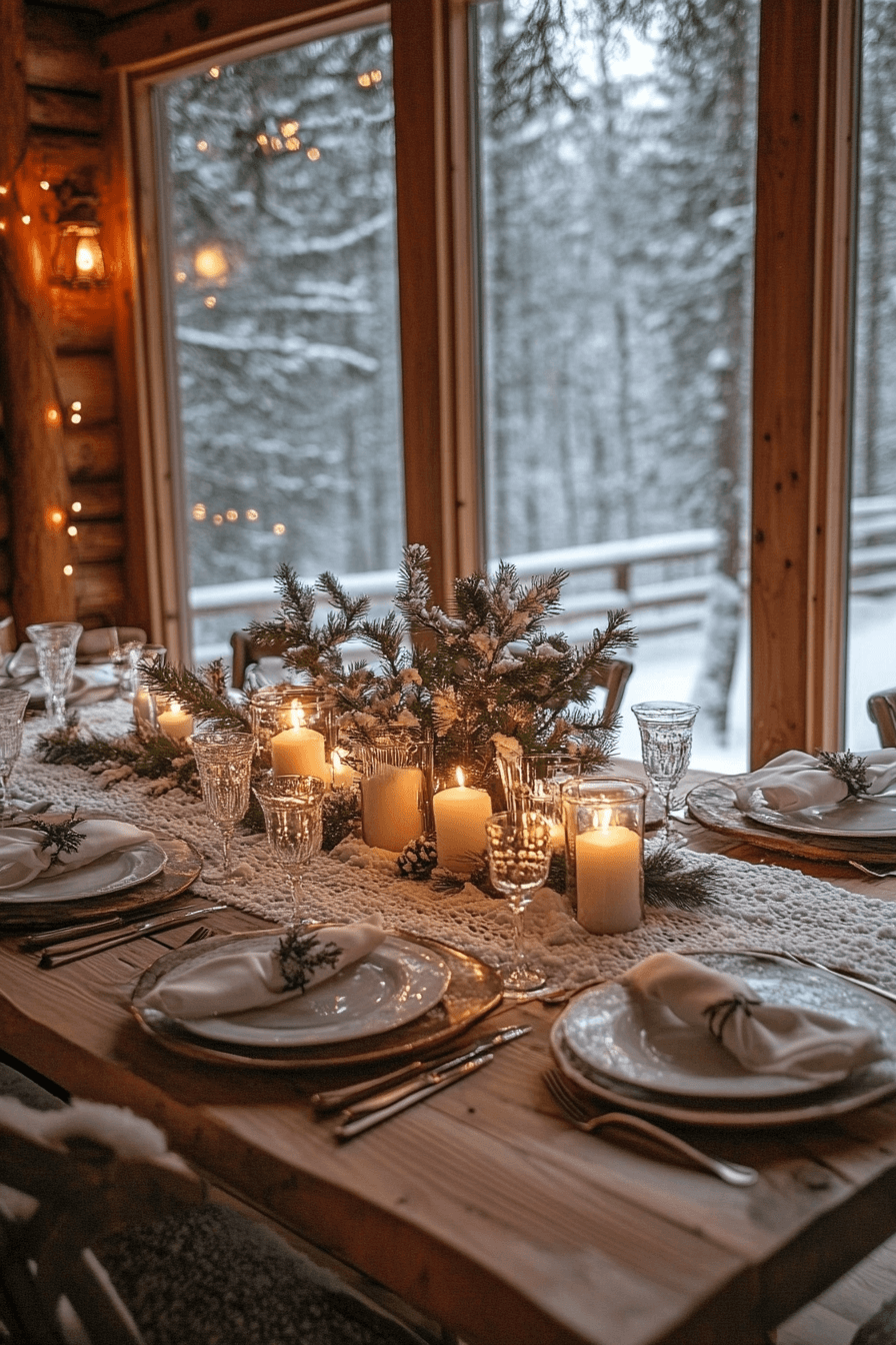 Your dining room sparkles with elegance and cheer during your little cabin Christmas celebration. A rustic table gleams under candlelight while plaid runners and pine sprigs add charm. The glow of laughter mixes with the aroma of freshly baked pies. It’s a feast that feels both simple and spectacular.