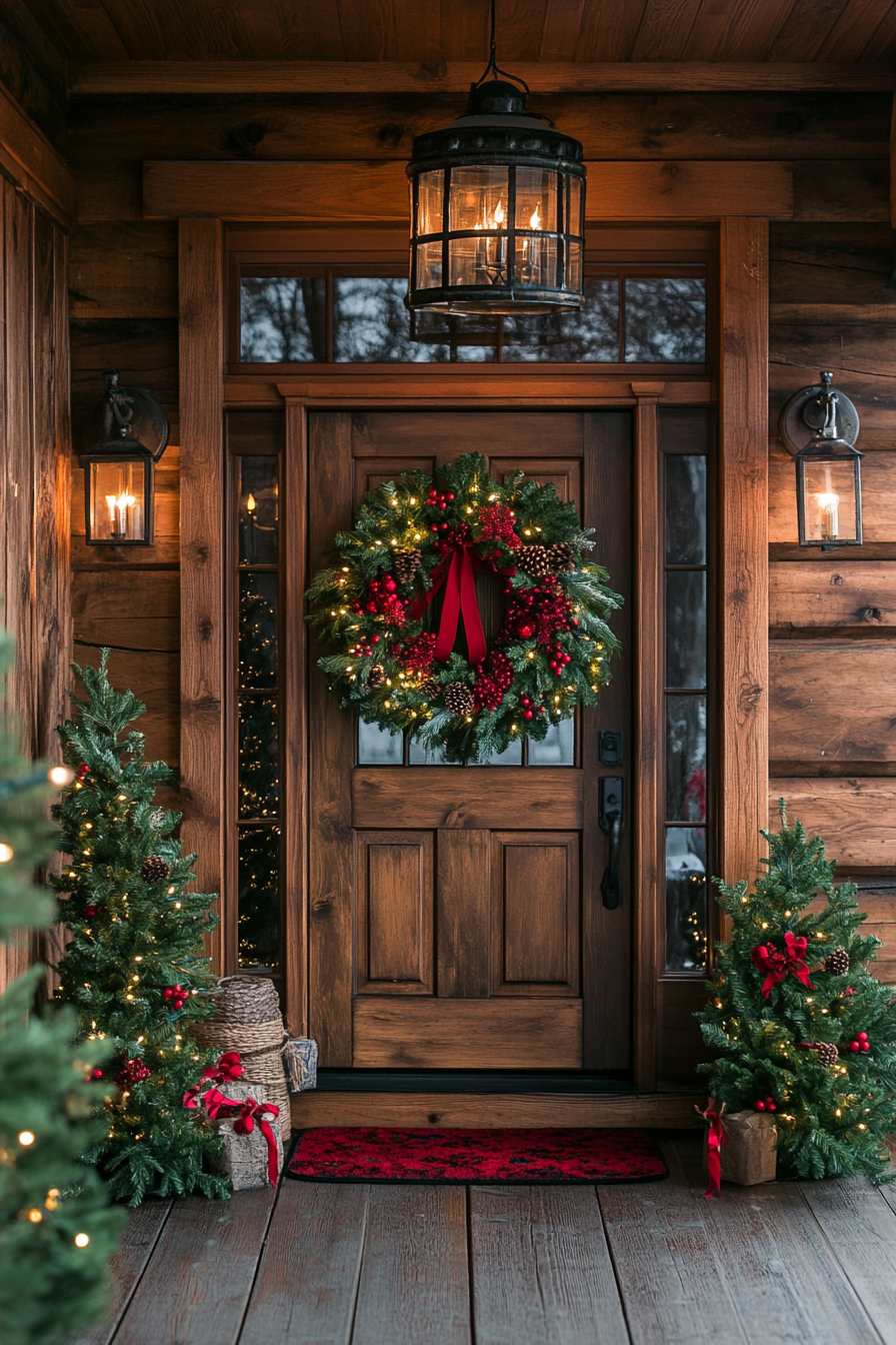 The first step into your home should feel like a hug, especially during your little cabin Christmas. A wreath of pine and berries glows against the wooden door. Lanterns light the entry while garlands sparkle softly. Every guest feels the warmth before they even speak.