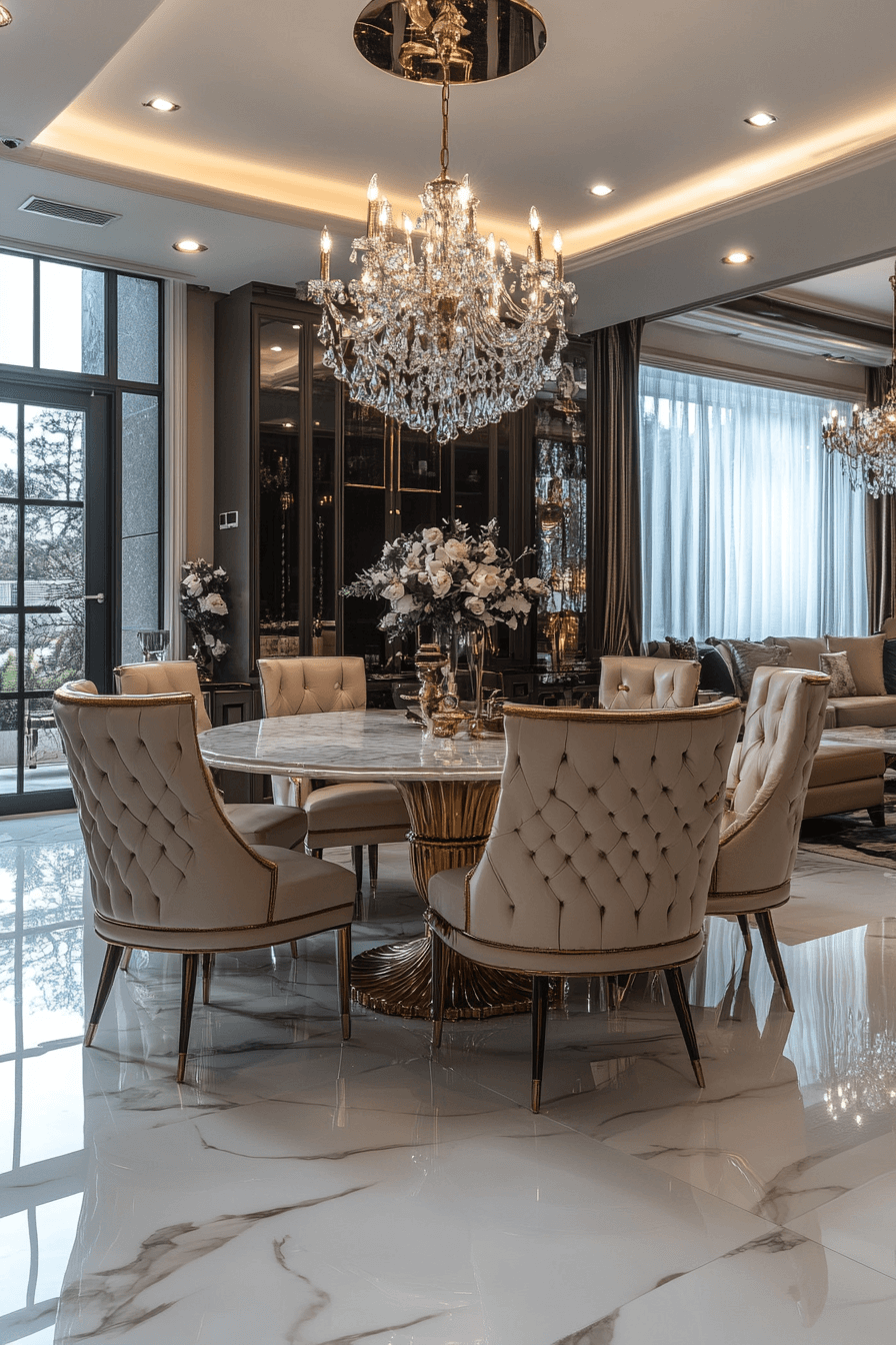 Transform your dining space into a stunning showcase of modern sophistication with these luxury dining room ideas that redefine elegance. From marble surfaces and crystal chandeliers to sleek metallic accents and dramatic lighting, each design demonstrates how contemporary style can create an atmosphere of refined opulence. Whether you prefer minimalist grandeur or bold statement pieces, these curated spaces offer inspiration for crafting a dining room that balances high-end materials with inviting comfort, proving that luxury and livability can beautifully coexist.