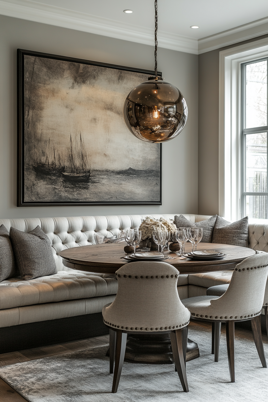 Neutral tones prove they can be just as luxurious in a dining space. Layered textures keep the look rich and inviting. Subtle metallics add understated elegance.