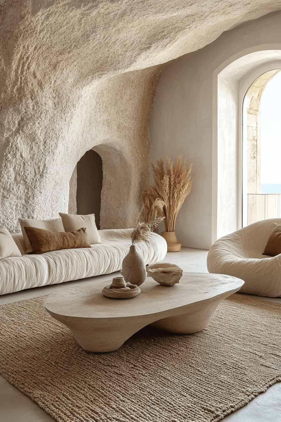 Create harmony with soft neutrals in flowing furniture shapes. Use ivory, oat, and latte as a base. Add tactile layers for coziness. The space feels calm and cohesive.