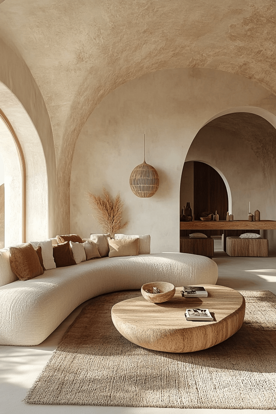 Create a sense of ease with curved sofas, rounded coffee tables, and arched doorways. These shapes soften the room’s energy. Layer in plush fabrics for comfort. Keep tones neutral for a soothing atmosphere.