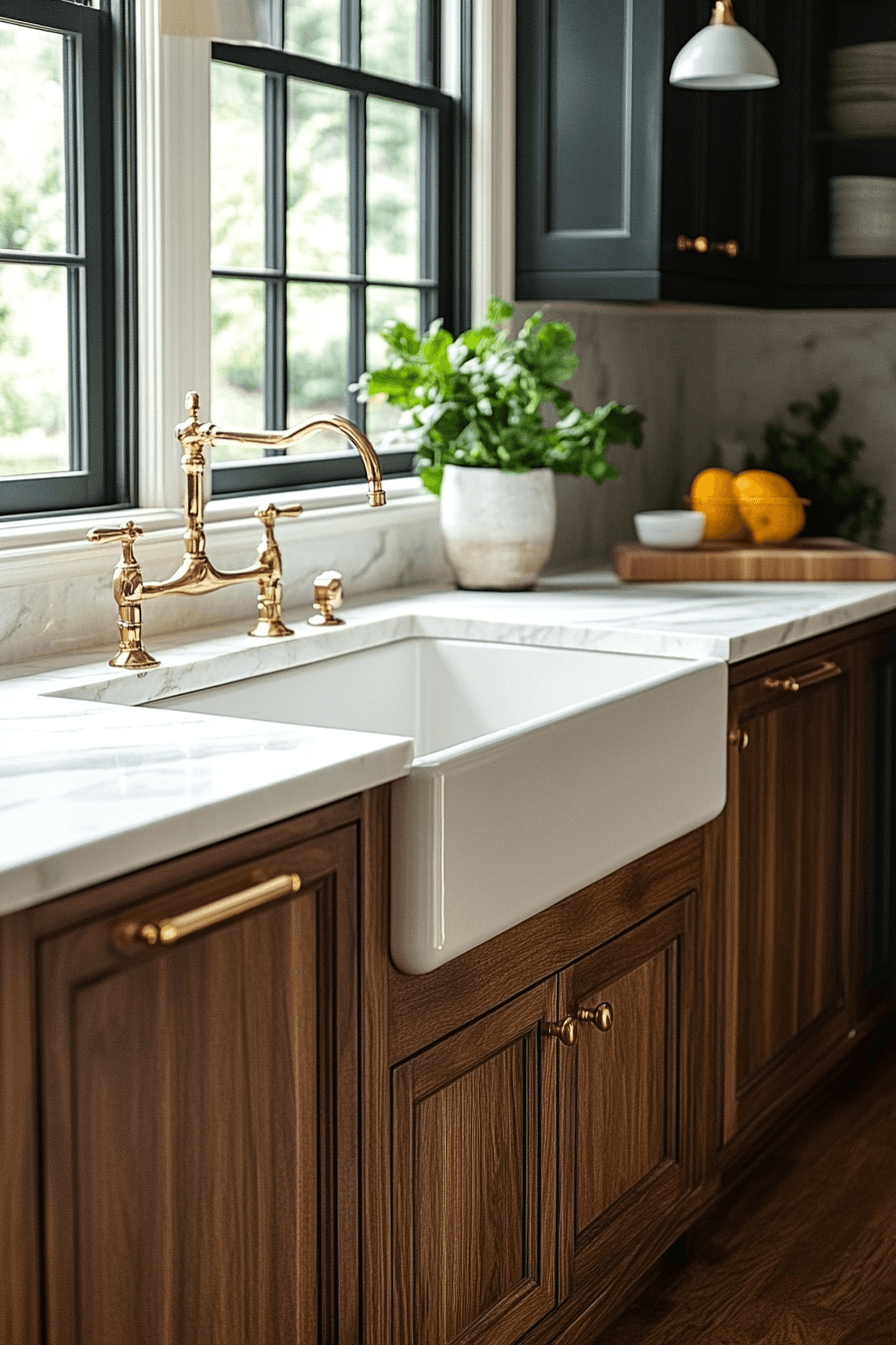 Dark metal hardware adds contrast and definition to rustic kitchen cabinets. Black handles stand out against warm wood finishes beautifully. This small detail introduces a modern edge while maintaining rustic charm. Coordinating fixtures enhance the cohesive look. These rustic kitchen cabinets feel both bold and balanced. Discover more ways to upgrade your hardware.