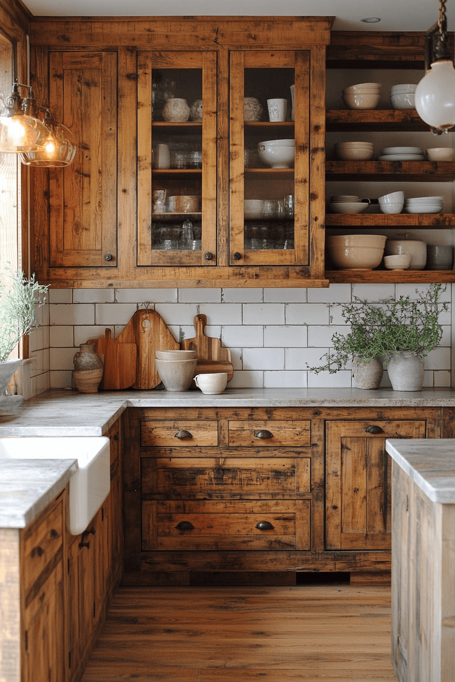 Transform your kitchen into a warm, inviting retreat with stunning rustic kitchen cabinets that blend natural beauty and timeless charm. From weathered wood finishes to modern industrial touches, these designs celebrate texture, warmth, and craftsmanship in the most beautiful ways. Whether you’re drawn to soft whitewashed tones, bold dark woods, or colorful painted finishes, there’s a rustic style that will make your heart skip a beat. Get ready to fall in love with natural grain patterns, handcrafted details, and cozy kitchen vibes that feel like a warm hug every time you walk in. These 27 inspiring ideas will help you create the rustic kitchen of your dreams—one cabinet at a time!