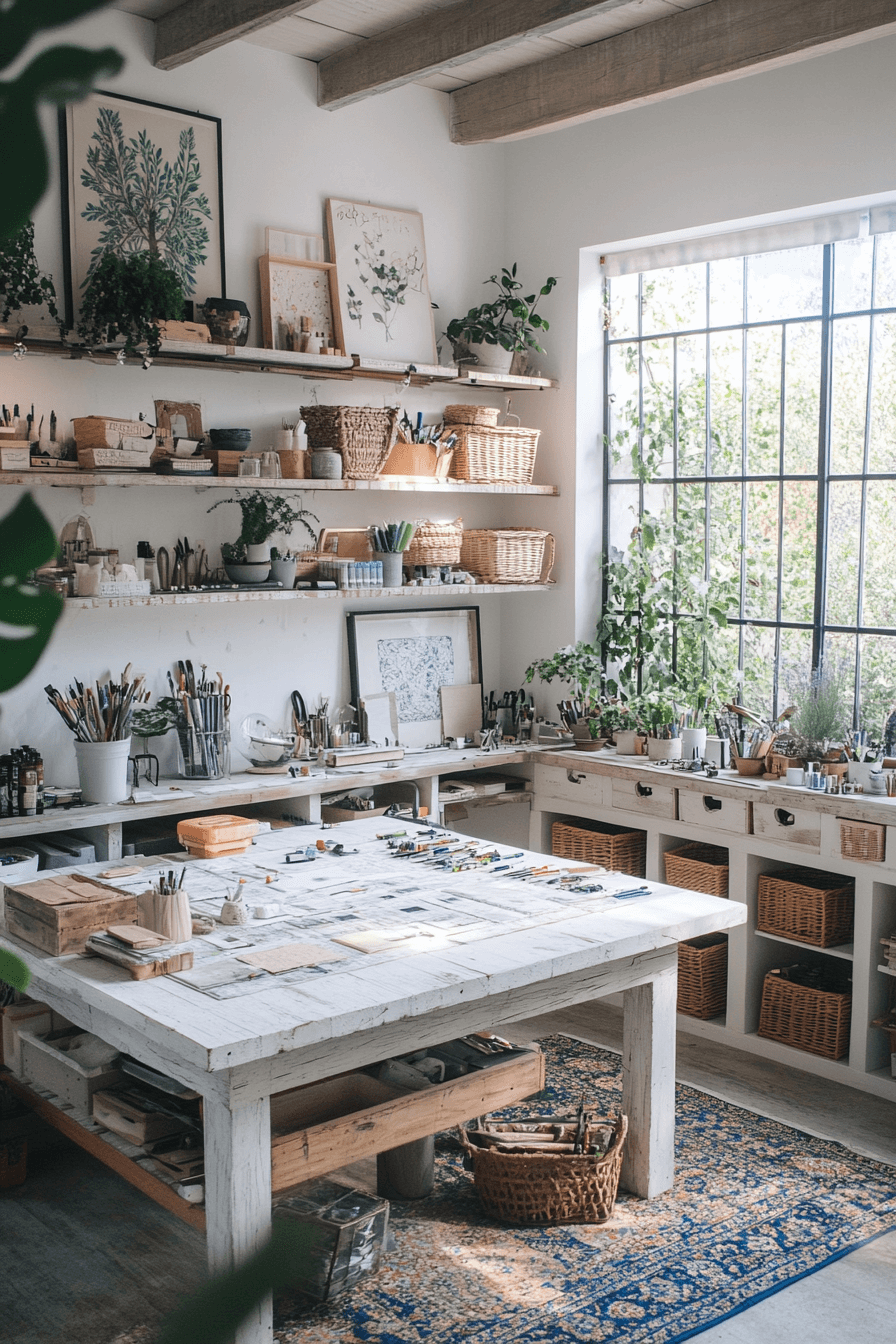 A craft studio inspired by Scandinavian Japanese interior values becomes a space of creativity and clarity. Smooth wood surfaces and minimal décor keep the atmosphere fresh and open. The natural palette invites relaxation and flow. Organized storage turns productivity into a calming ritual.