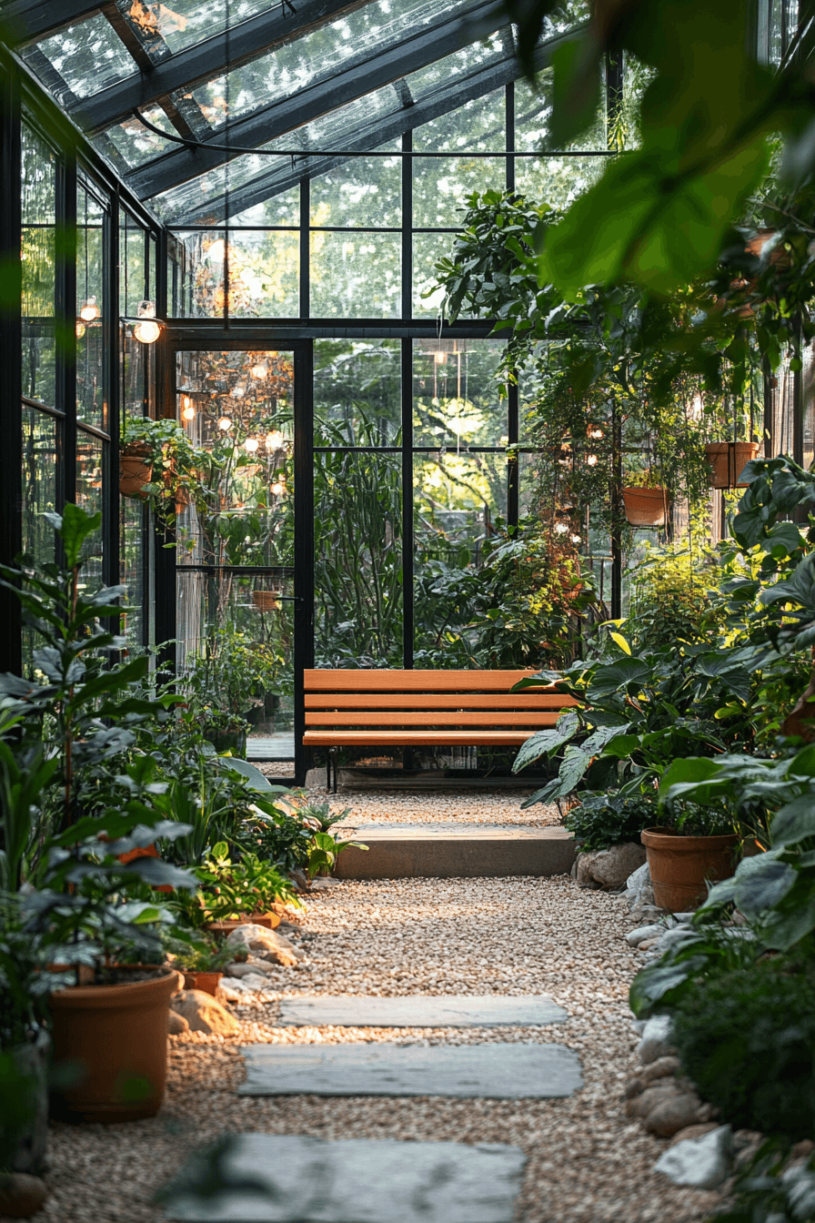 The conservatory glows with nature’s tranquility through a Scandinavian Japanese interior lens. Gentle light, smooth wood tones, and minimal furniture create organic beauty. The atmosphere feels open, balanced, and deeply calming. It’s a space for slow living and peaceful reflection.