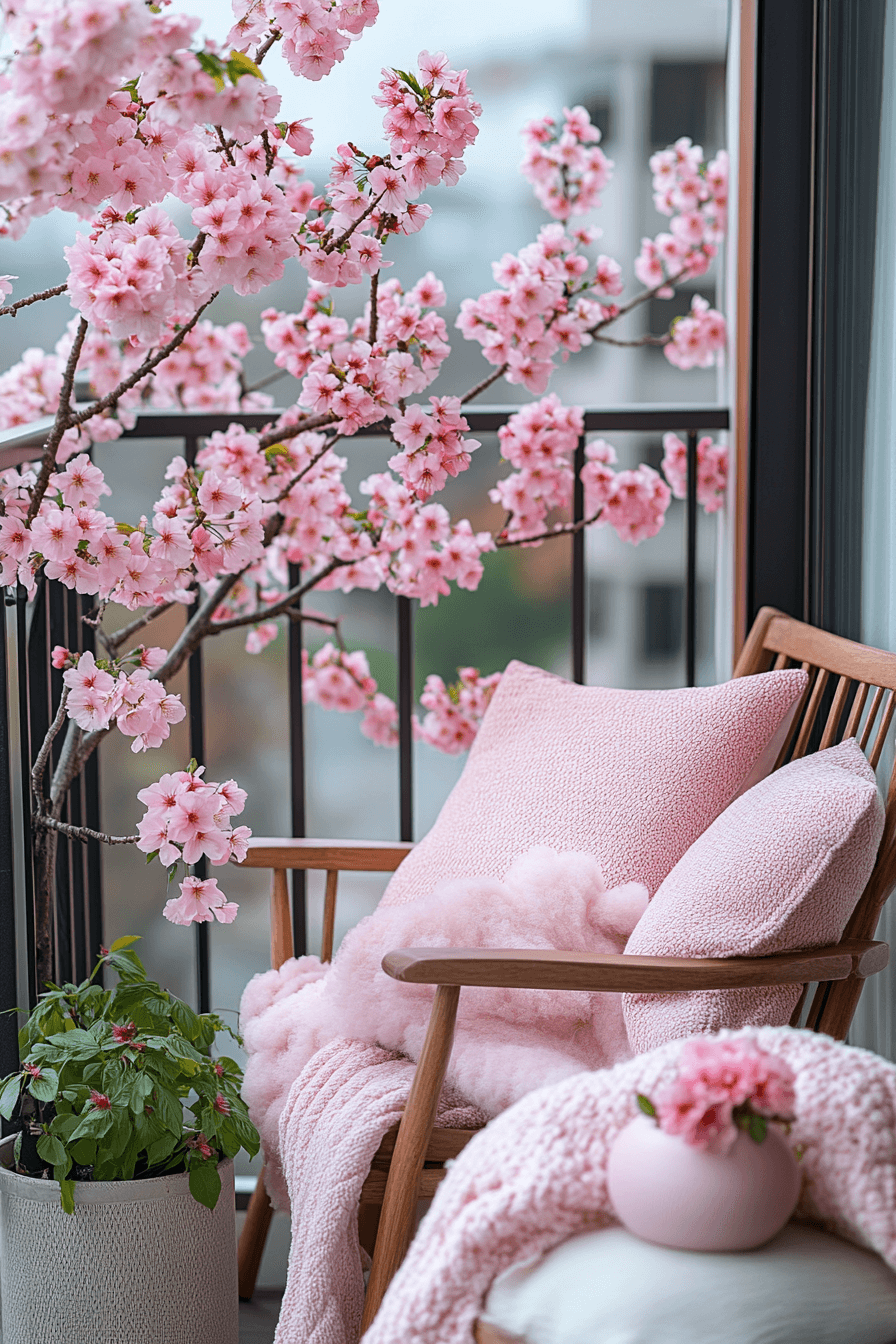 This balcony radiates soft charm inspired by a Scandinavian Japanese interior fusion. Gentle lighting, simple furniture, and pale pink accents bring a relaxing ambiance. The airy layout makes even compact spaces feel open and peaceful. It’s perfect for morning coffee or sunset reflection.