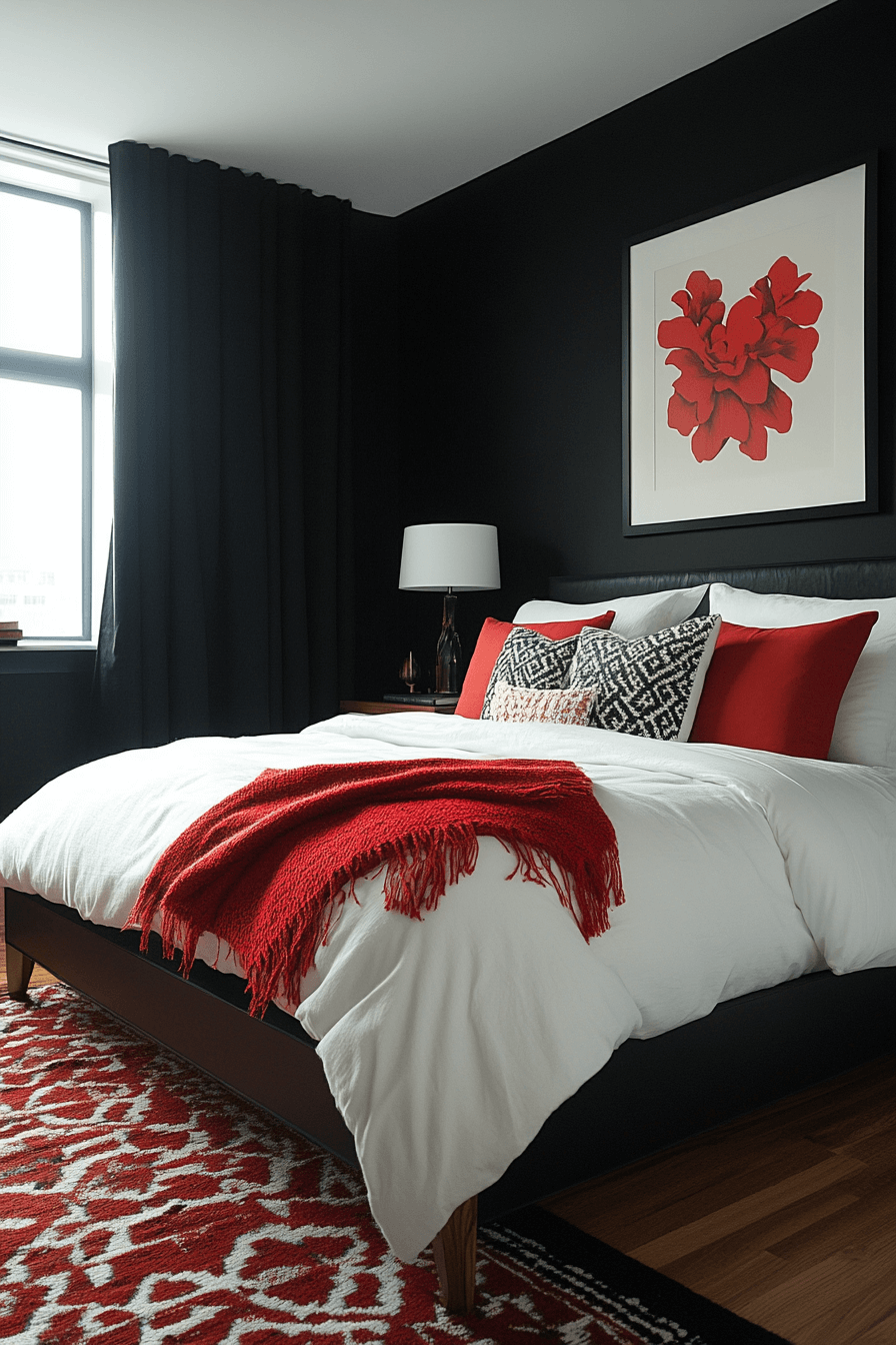 High-contrast color combinations make a dramatic statement in small spaces. Black and white is classic, but other bold pairings work too. This approach helps define zones and adds depth. It’s a design choice that stands out.