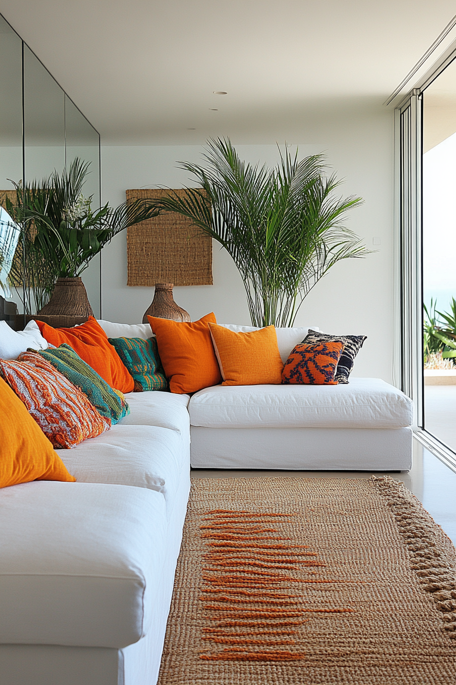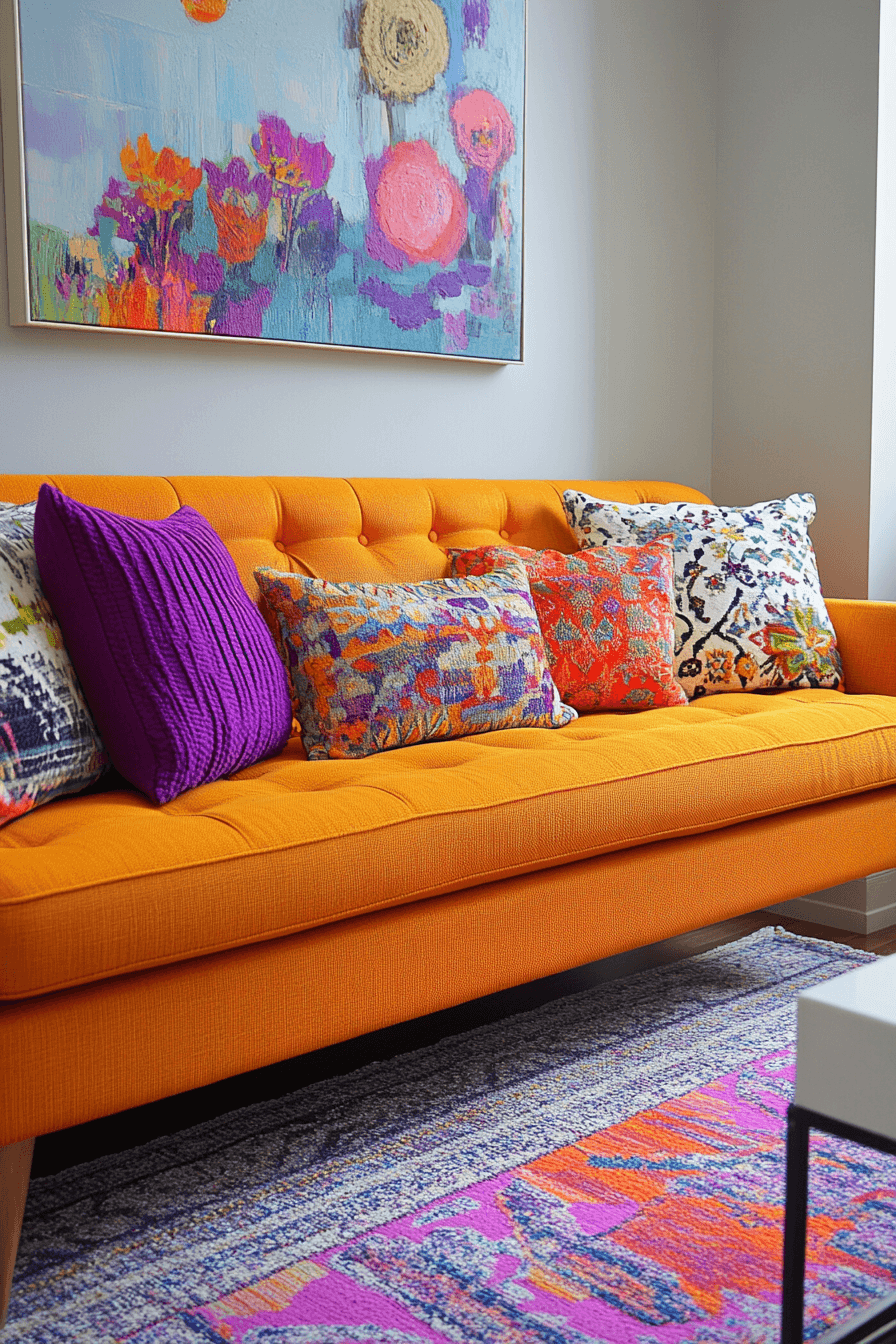 Use playful splashes of color to refresh your space instantly. Bright pillows, rugs, and wall art add warmth and personality. They’re inexpensive updates with high impact. Switching them seasonally keeps the look fresh.