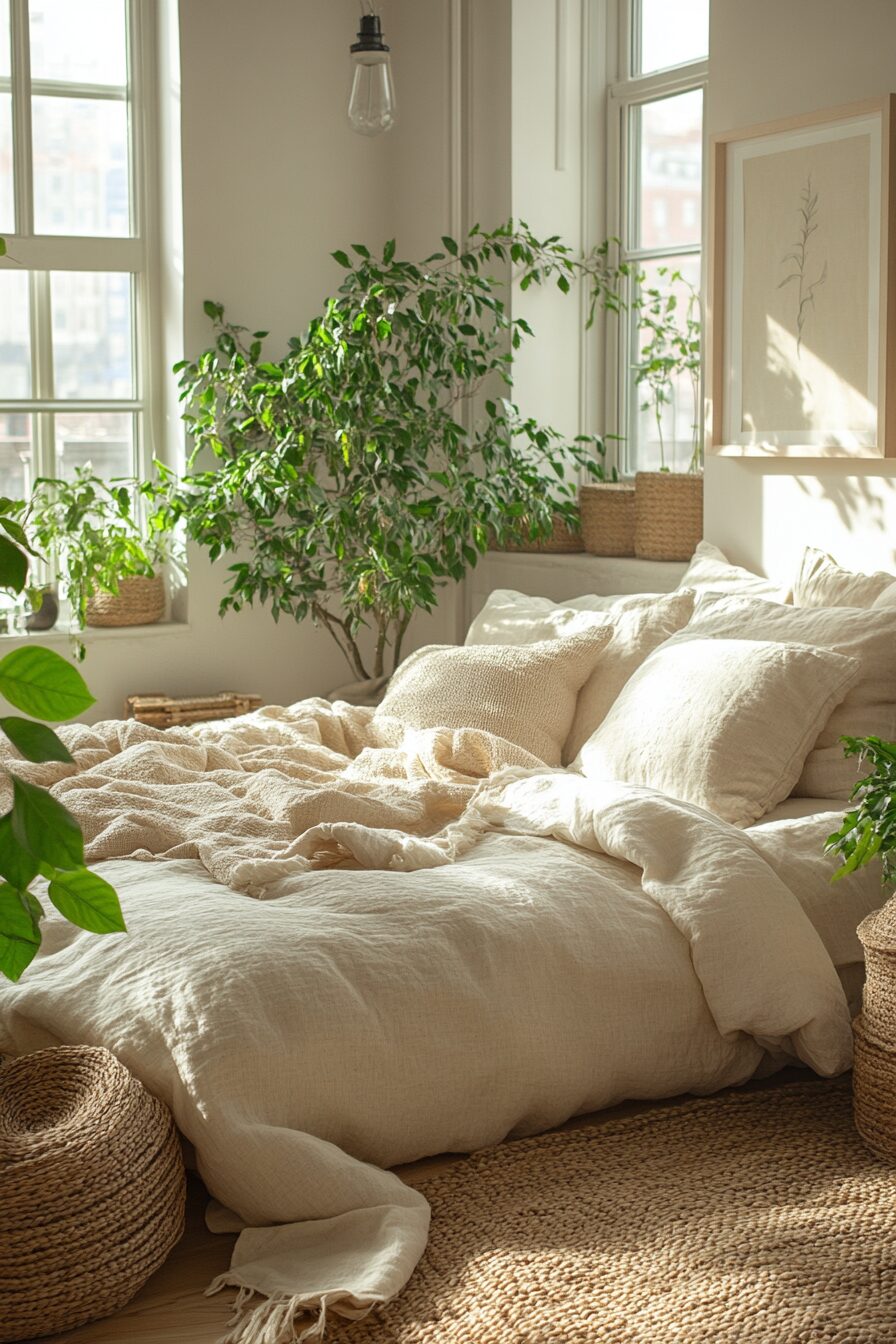 Fill your apartment with the calm of nature by using plants, woven textures, and soft earthy shades. This combination balances city life with natural serenity. Layer greenery with cozy fabrics for a soothing atmosphere. It’s a perfect way to create a relaxing retreat in a compact home.