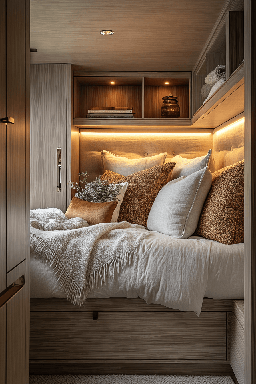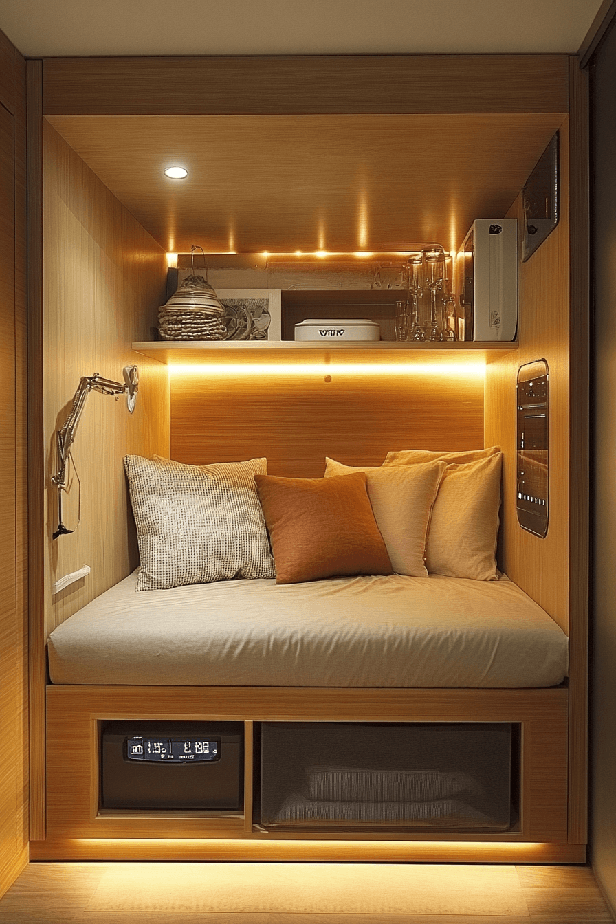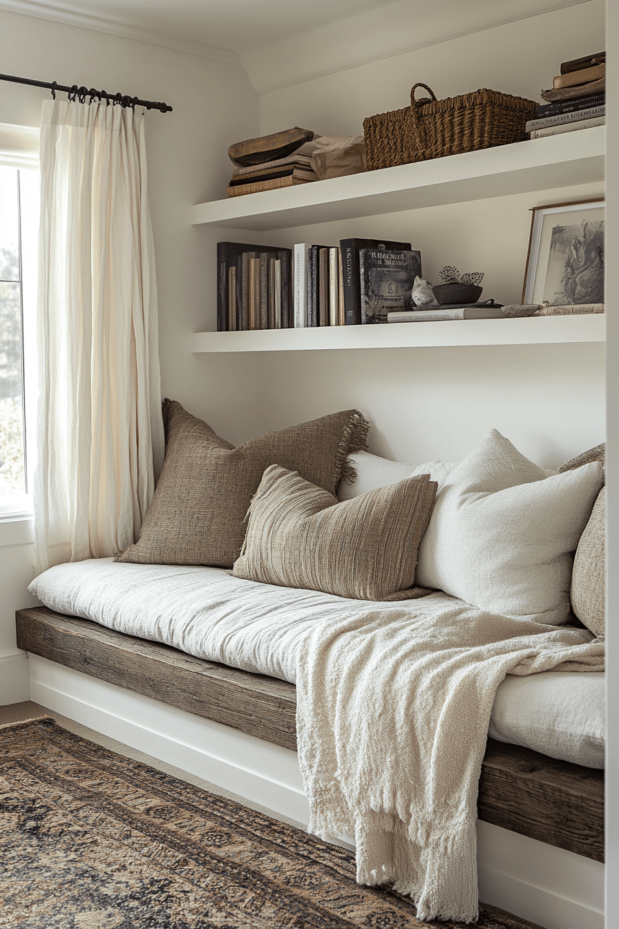 Cozy sleep nooks add warmth and charm to inviting small guest room ideas. A tucked-away bed paired with soft lighting creates an intimate retreat. Small guest room ideas feel especially welcoming with layered textures and neutral tones. Minimal styling keeps the space calm and uncluttered. The result is a relaxing environment guests will appreciate. Turn tiny spaces into dreamy escapes with small guest room ideas that feel extra cozy!