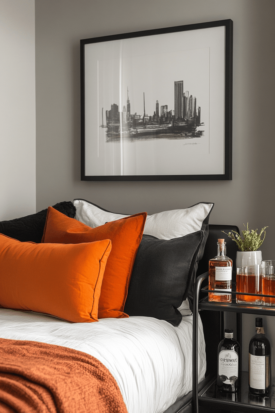 Urban flair adds personality to bold small guest room ideas with a modern edge. Sleek furniture and graphic accents bring energy to the space. Small guest room ideas stay functional with smart layouts that keep things open. The design feels lively yet organized. This approach works perfectly for city-inspired homes. Add a modern twist with small guest room ideas full of urban style!