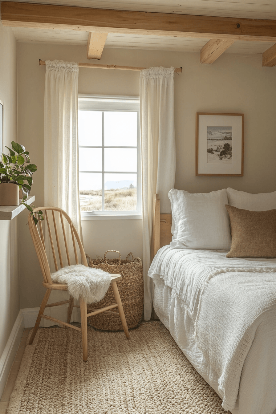 Scandinavian simplicity enhances small guest room ideas with warmth and balance. Light wood tones and soft textiles create a cozy yet clean look. Small guest room ideas in this style focus on minimal clutter and functional beauty. The space feels open, calm, and inviting. Every element serves a purpose while maintaining charm. Bring Nordic calm into your home with small guest room ideas that feel effortlessly cozy!