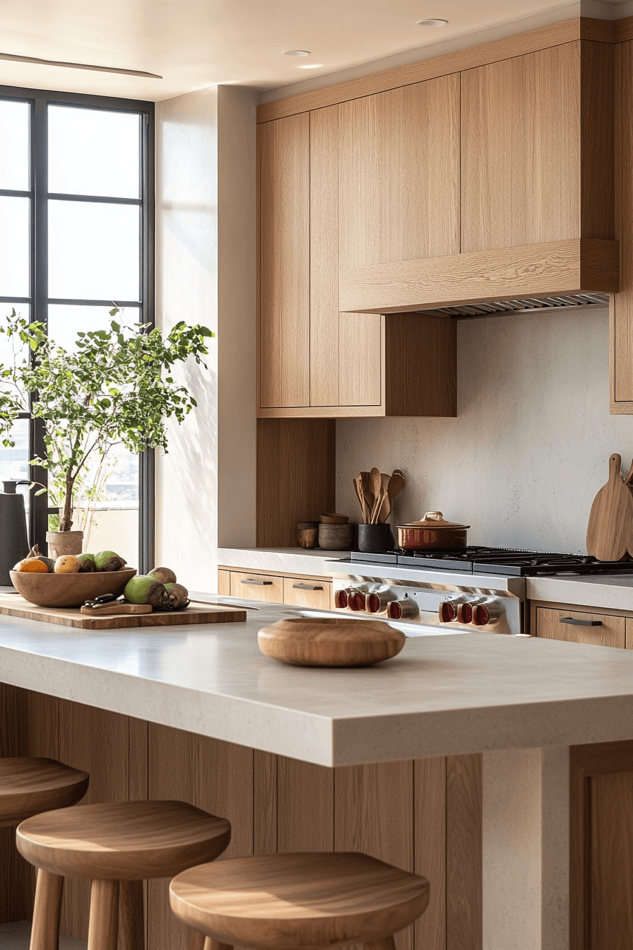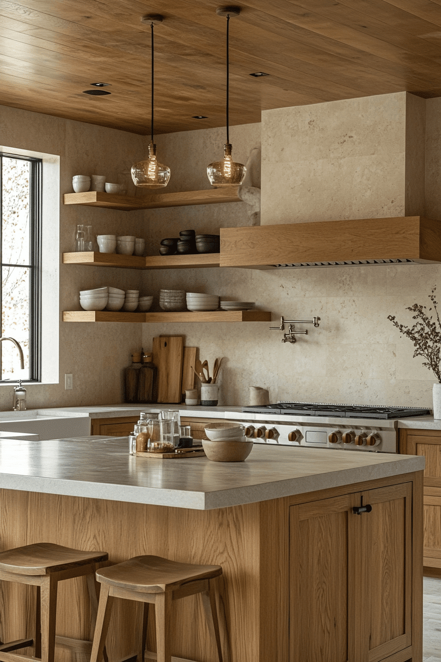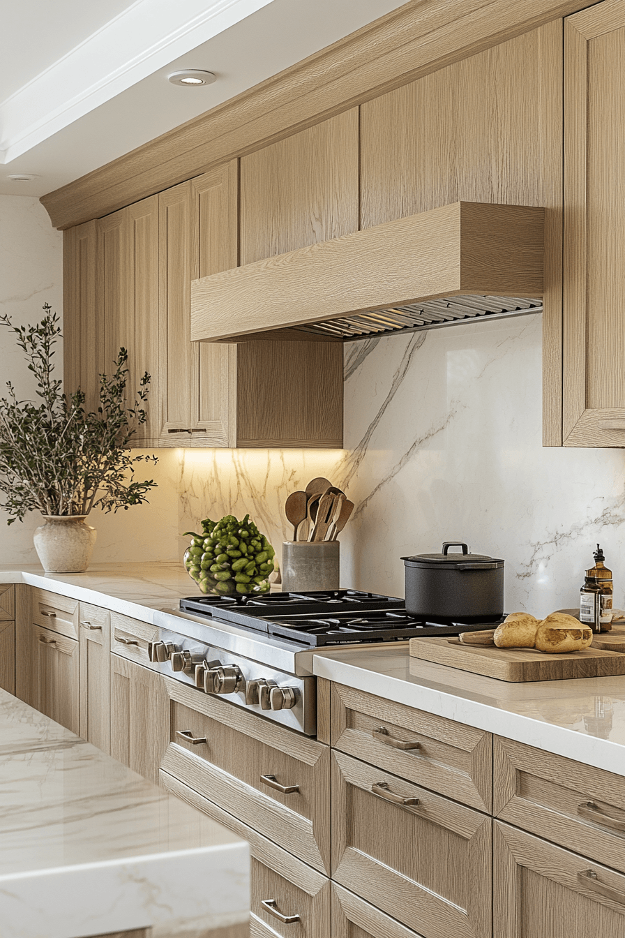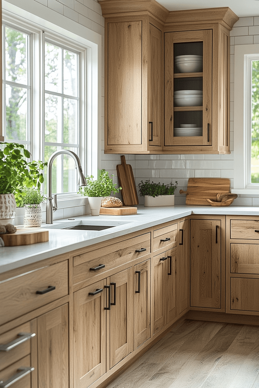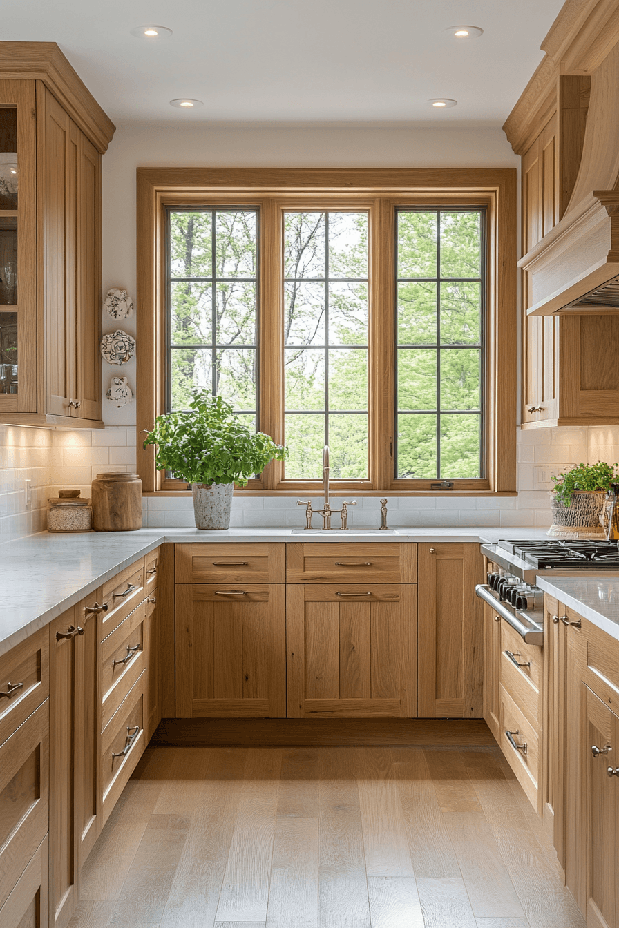 10. Serene Oak Kitchen Feel
