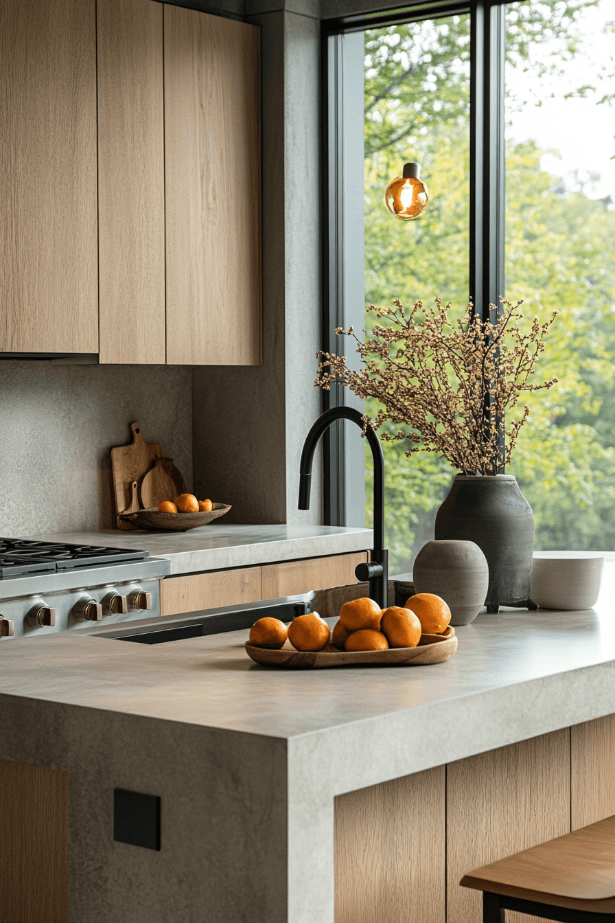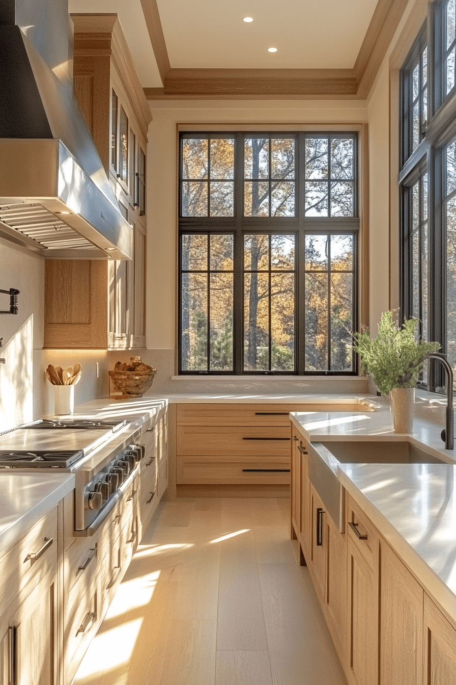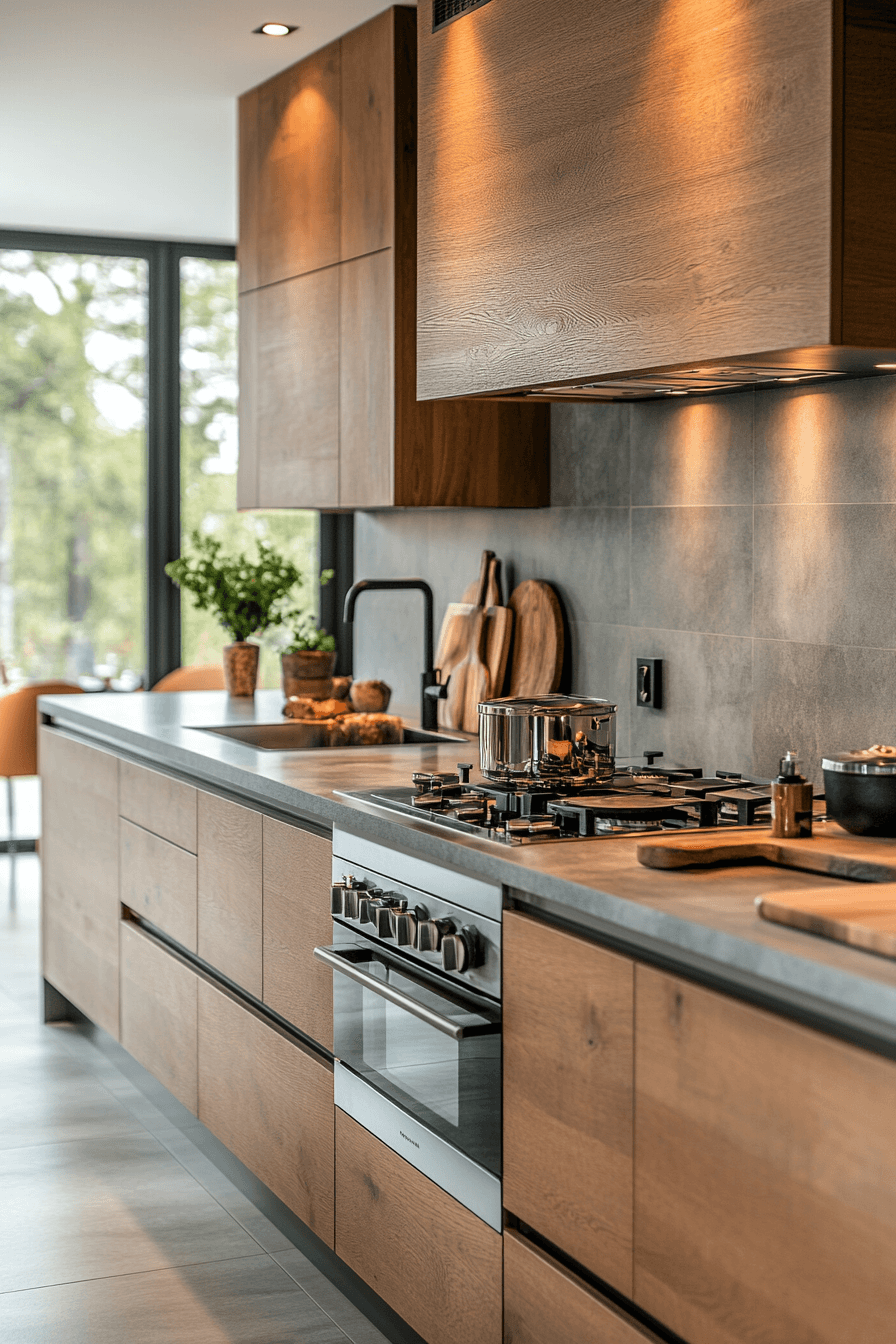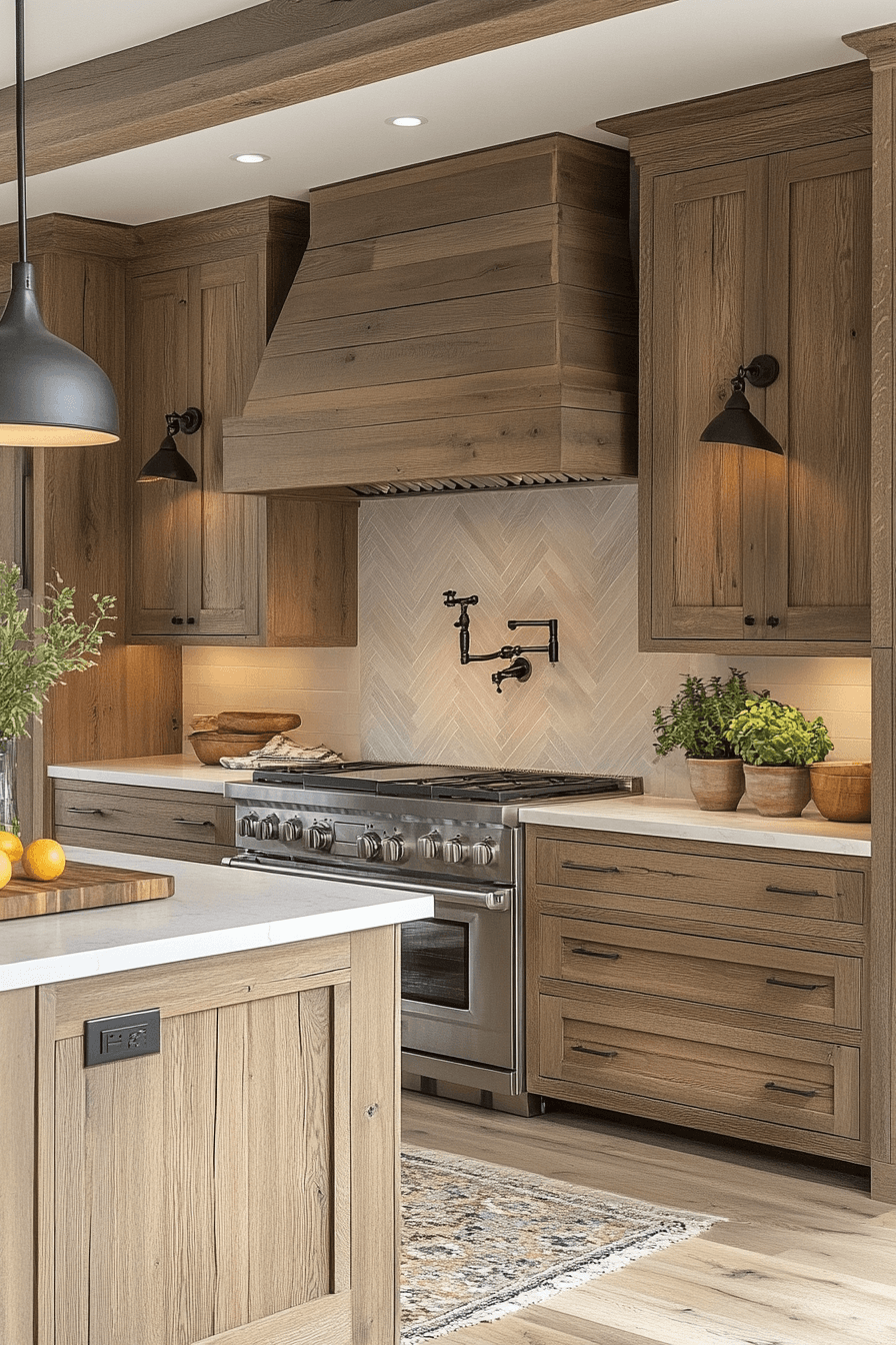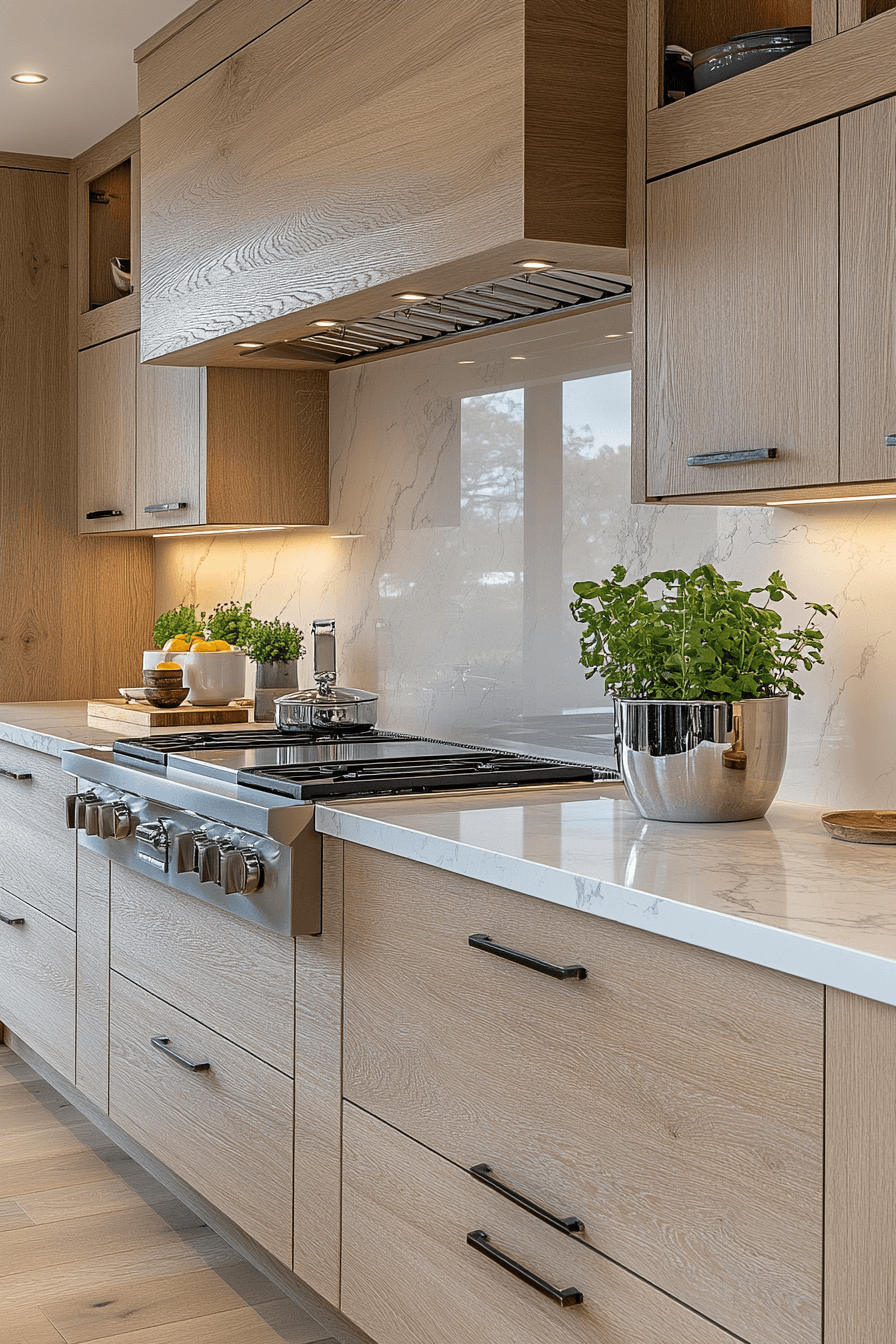 10. Serene Oak Kitchen Feel